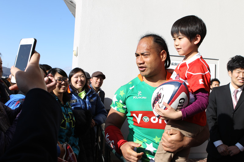 試合後もファンサービス旺盛なタウファ選手