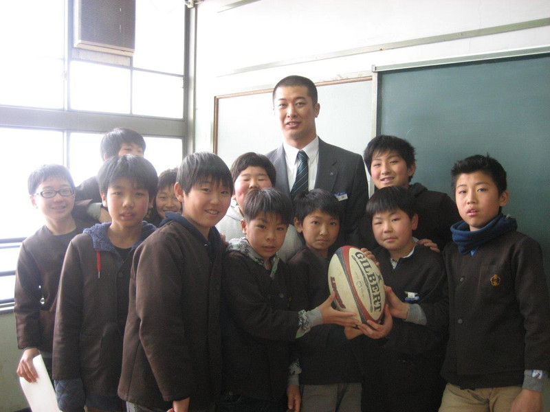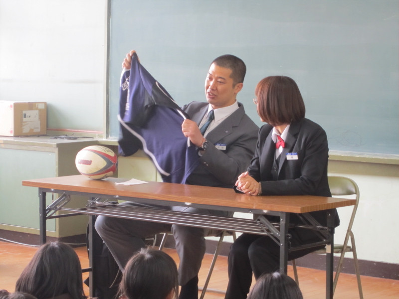 経験談では、ラグビーを始めたエピソードから話し、夢に向かって一生懸命に取り組めば、夢に近づく道は拓けて行く事を伝えました。