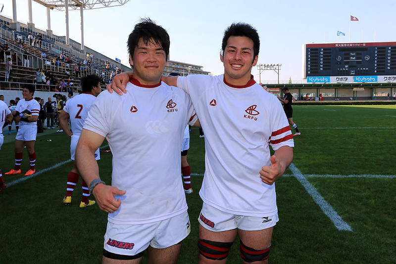 4月26日(日)、東大阪市花園ラグビー場で開催された「第9回関西ラグビーまつり」における、関西学生代表(※2014年度関西大学リーグ所属選手より選出)とニュージーランド学生代表(NZU)との試合に、ライナーズの田淵慎理選手、萩原寿哉選手が出場しました。また、田淵選手はこの試合で代表チームのキャプテンを務めました。