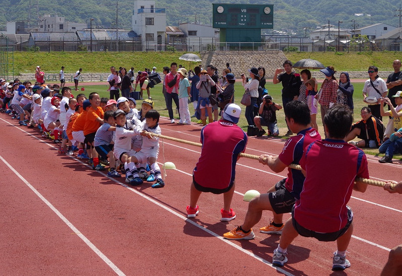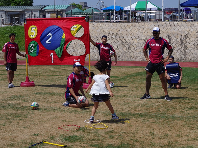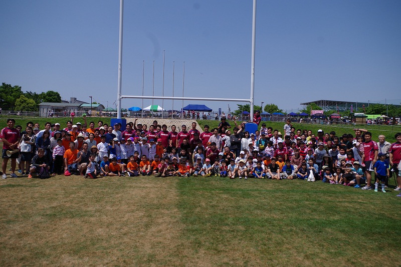 当イベントでは、ラグビー体験を実施した後、ライナーズ選手と参加者とで綱引き勝負を行い、最後にプレゼントが当たるジャンケン大会を行いました。多くの子どもたち、親子連れの方々にお集まりいただき、楽しんでいただくことができました。