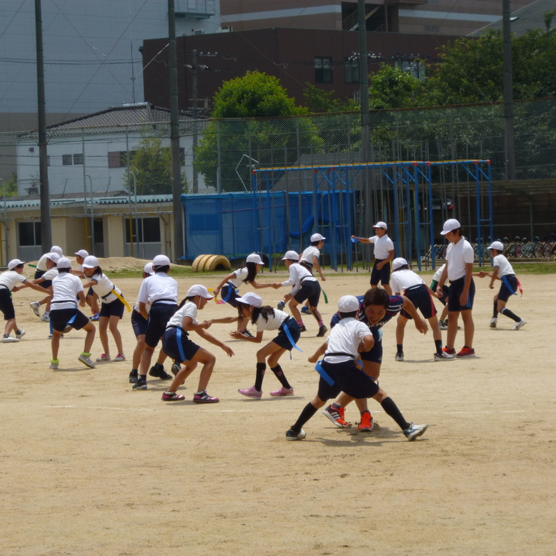 タグラグビーの経験がある生徒が多く、ライン際を疾走する生徒さんもおり、試合はおおいに盛り上がりました。