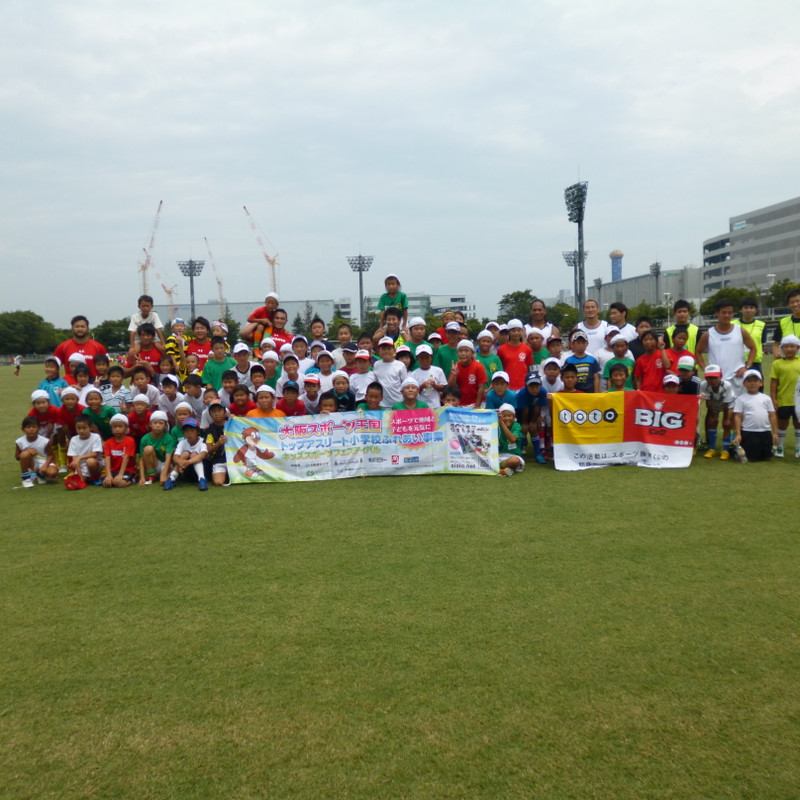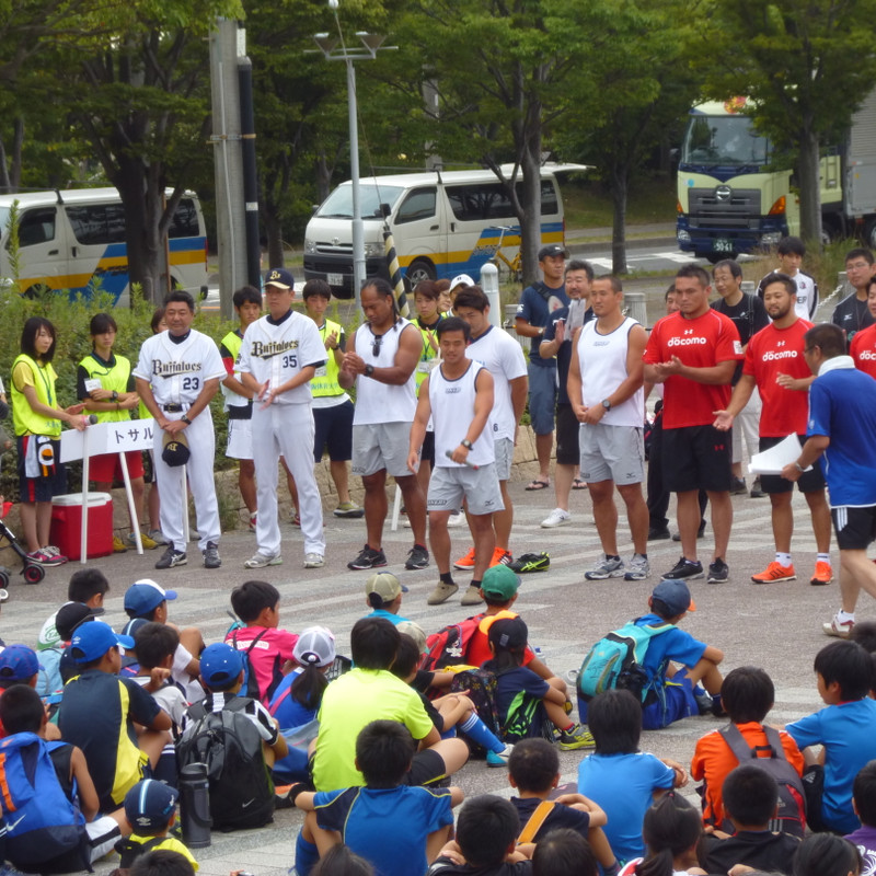 大阪スポーツ王国 キッズスポーツフェスティバル(2015年8月12日実施)に近鉄ライナーズから佐藤選手、王選手、統悦選手、吉井選手の4名が参加しました。