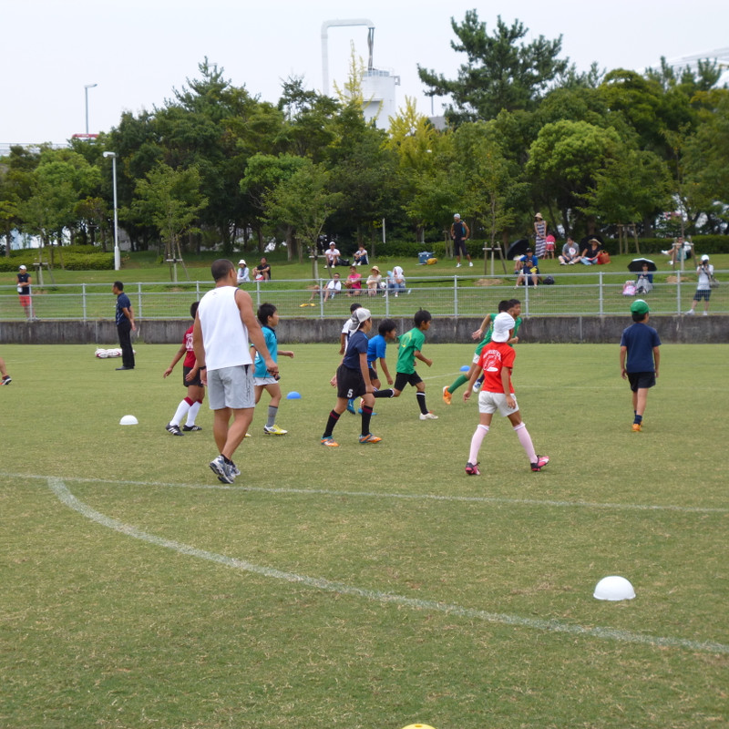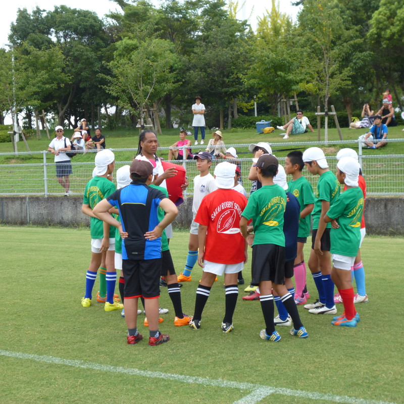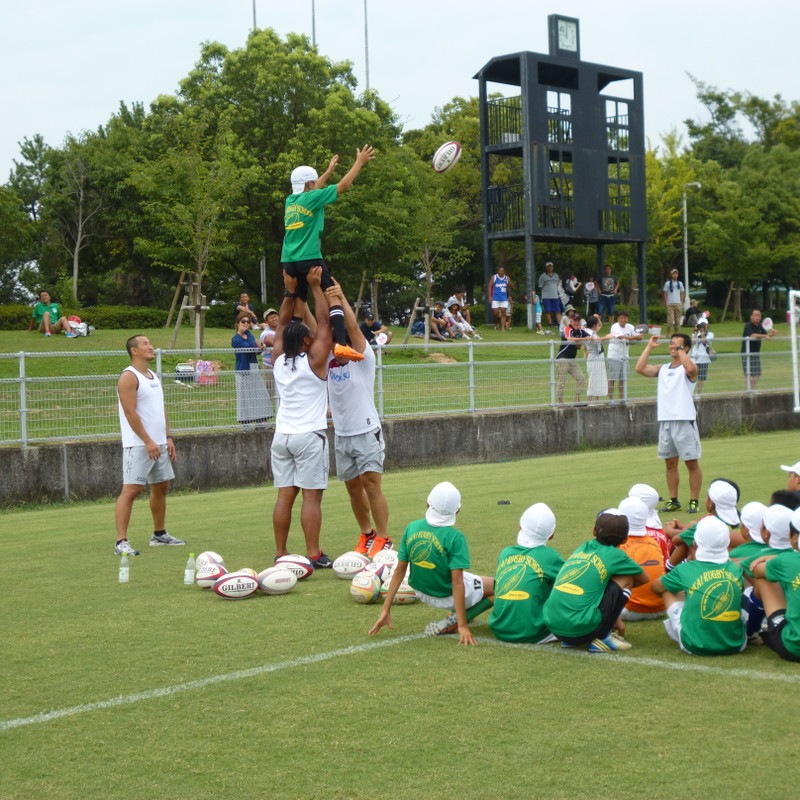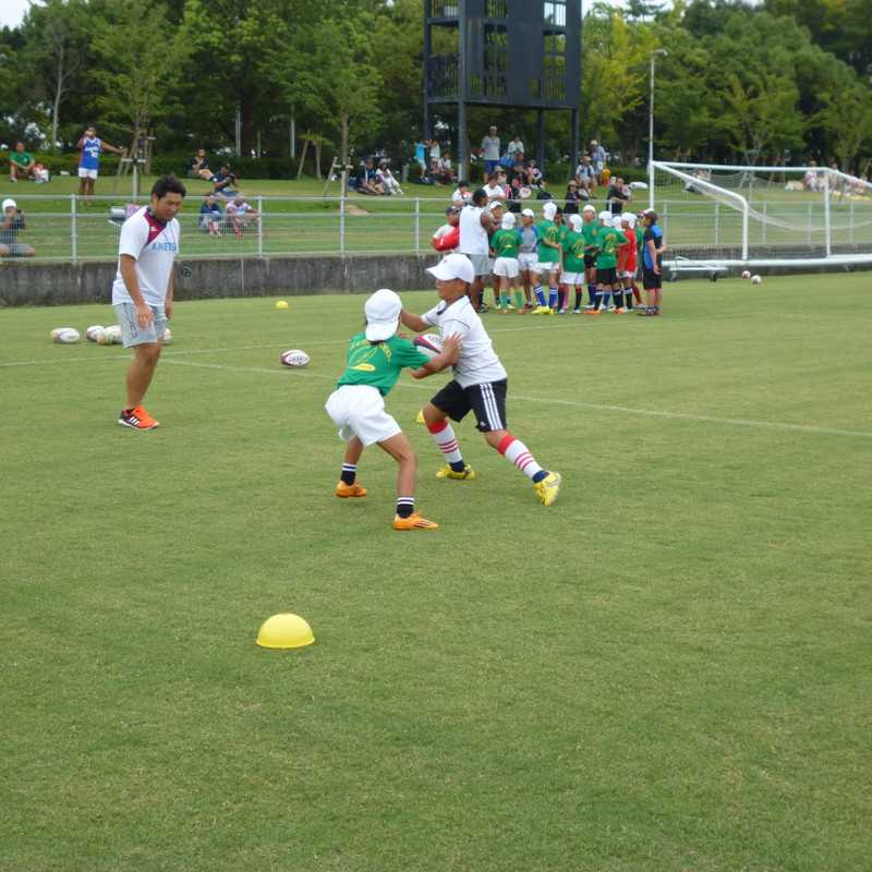 当日は、ラグビー希望の小学生98名に対して、NTTドコモレッドハリケーンズの選手4名が低学年(1,2,3年生)を担当し、ライナーズが高学年(4、5、6年生)を指導しました。
