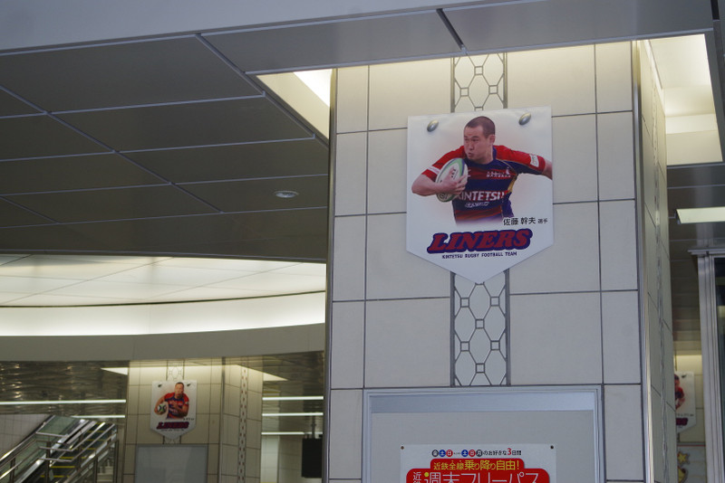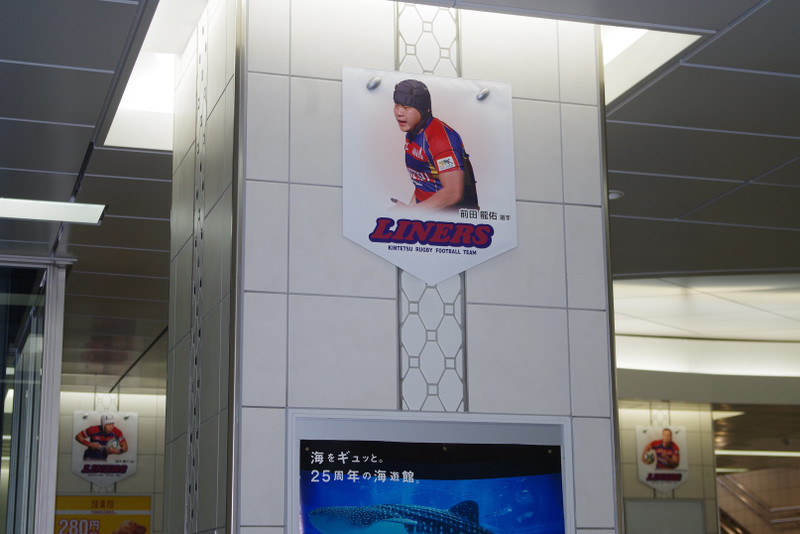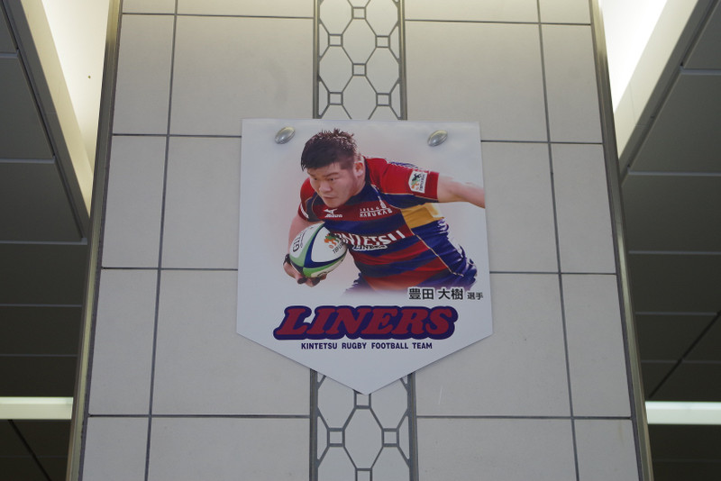 本日(8/31)の午後から、東大阪市花園ラグビー場の最寄り駅である近鉄・東花園駅におきまして、コンコース内の柱をライナーズ選手のフラッグで装飾しています!