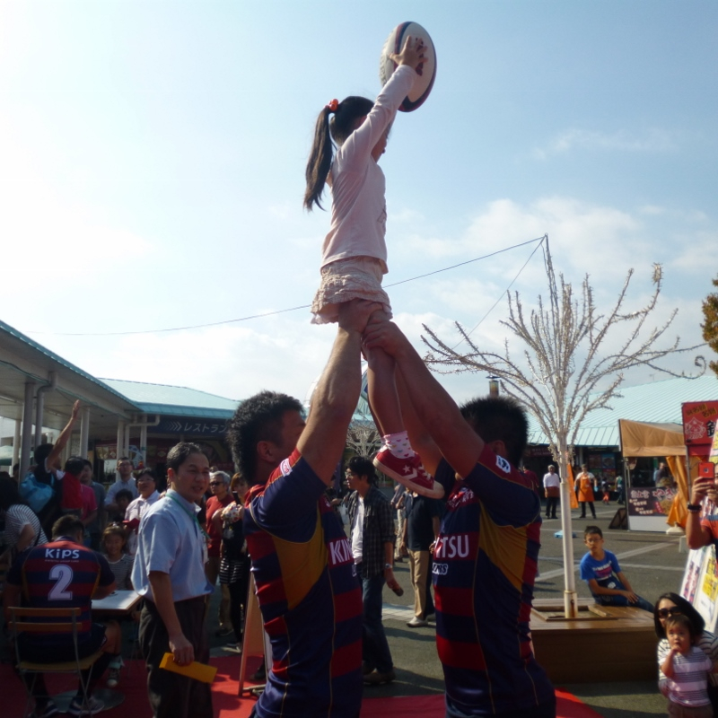 ラインアウトリフティング体験は、子供だけでなく大人にも大人気でした。