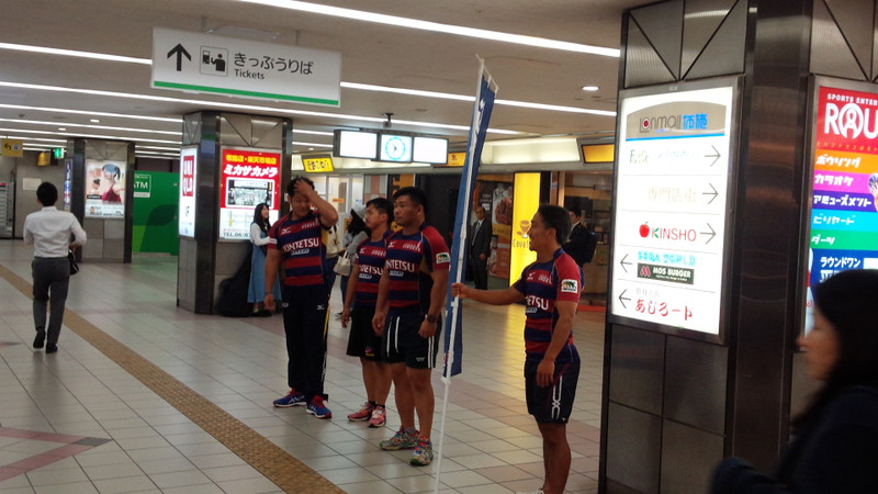 10月27日(火)に、ライナーズの選手が近鉄東花園駅・布施駅・大阪難波駅でトップリーグ開幕戦のPR活動を実施しました。