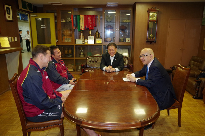 ラグビーワールドカップ2015での話に始まり、ラグビーワールドカップ2019に向けてのプロモーション、花園ラグビー場のあり方などについて意見交換を行いました。