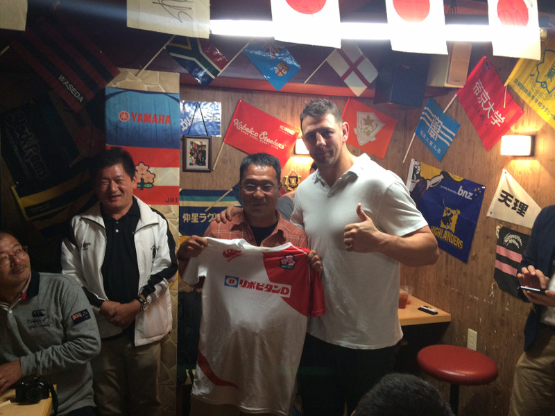 11月23日(月・祝)、大阪・北浜のラグビー部マーラーで行われたトークライブにトンプソン選手が出演しました。司会はラグビージャーナリストの村上晃一さんです。