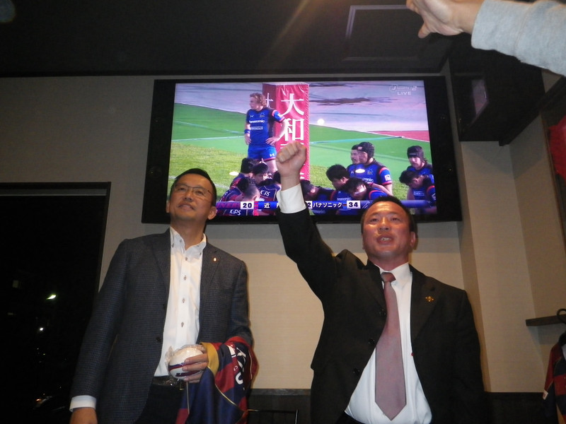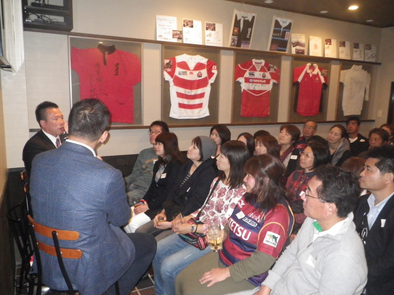 11月21日(土)、トップリーグ第2節の試合終了後に、京都駅付近の中華料理店『清華園』で行われたトークライブに前田監督が出演しました。司会はラグビージャーナリストの村上晃一さんです。