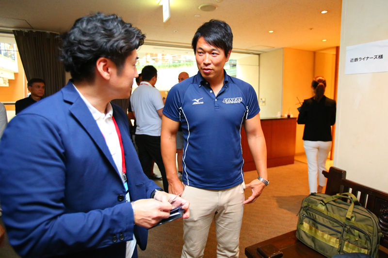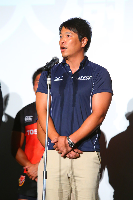 近鉄ライナーズからは坪井章監督、豊田大樹キャプテンが出席しました。