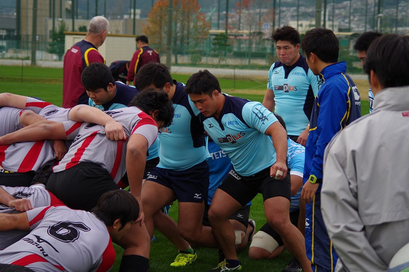 FWはライナーズ、同志社大学、大阪体育大学との3チームでそれぞれスクラムとラインアウトのセッション(実戦形式)を2ローテーションずつ実施。