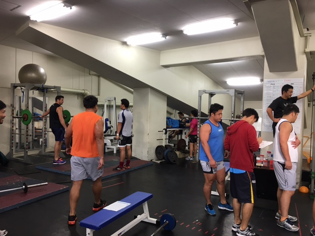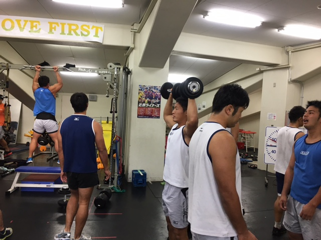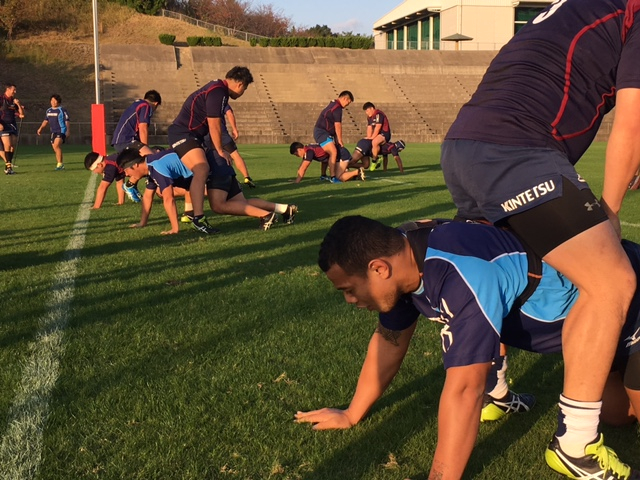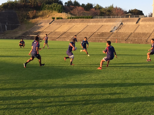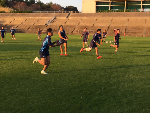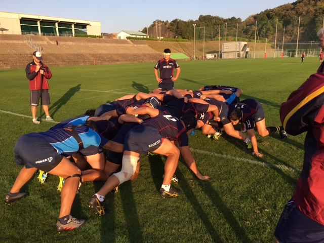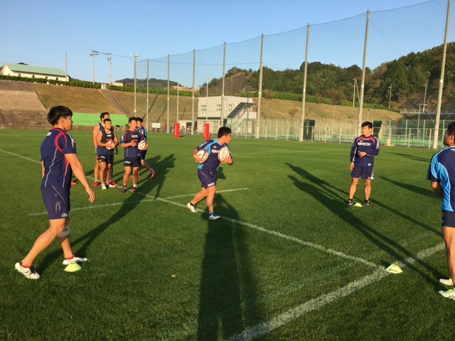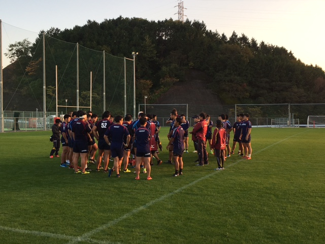 今日は、午前に花園ラグビー場でジムトレーニングを行った後に和歌山へ移動し、午後はチーム全体で練習前にミーティングを行い、この合宿のテーマを再確認してからグラウンドに出て細かい動きの確認をしました。
