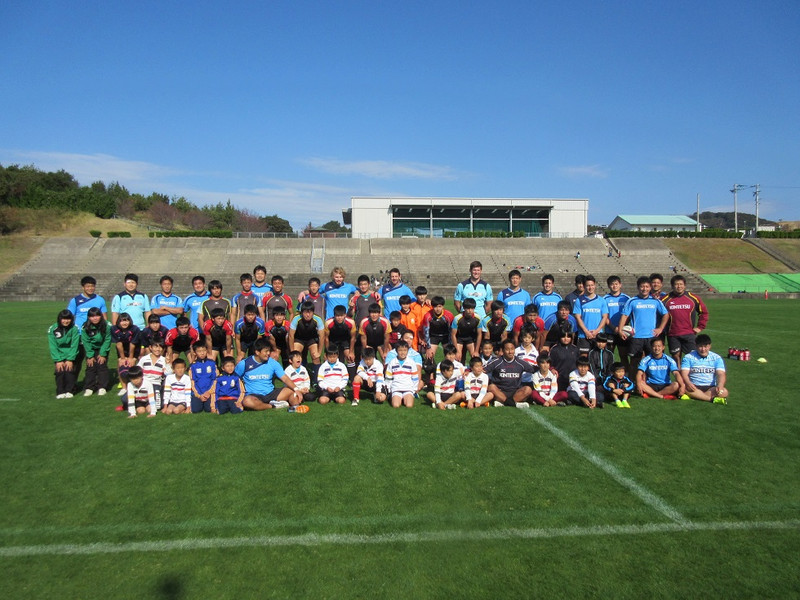 祝日という事もあり、下は幼稚園児から上は高校生まで幅広い年齢の選手達が参加してくれました。1時間という短い時間でしたが、時に楽しく時に真剣にラグビー体験を行いました。