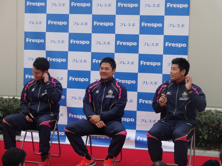 前半のスイーツトークショーには森田選手、南藤選手、島選手が参加し前日の試合の話やチームの話から、普段の食生活の話などプライベートな話しまで、最後には出展していたスイーツの試食をしながらレポートを行いました。中々試合会場では見られない選手の普段の一面がよく見られたトークショーとなりました。