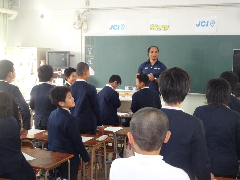 12月7日(水)大阪市高倉小学校で行われましたJCI(一般社団法人 大阪青年会議所)が主催する社会人講師事業に近鉄ライナーズのタウファ統悦選手が講師として参加しました。