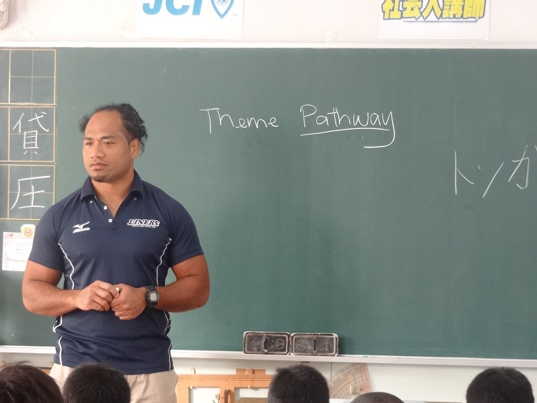 小学5年生約40人を対象に、「Pathway」をテーマにタウファ統悦選手がこれまで歩んできた人生、現在、そしてこれからの目標などを話し、子供達に夢を持つことの大切さ、そして夢を叶える為にチャレンジする事の重要性を伝えました。