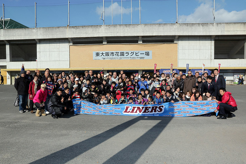 東大阪市花園ラグビー場到着後は近鉄ライナーズVSキヤノンイーグルス戦を観戦。ライナーズに多くの声援を送っていただきました。