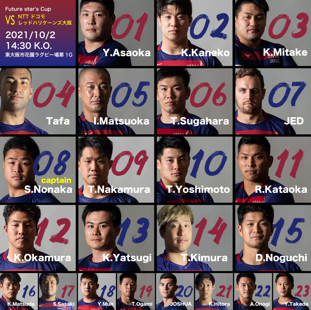 来る10月2日(土)14時30分キックオフのNTTドコモレッドハリケーンズ大阪戦(Future star’s Cup)のご案内をいたします。