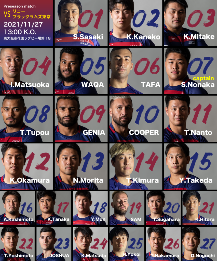 来る11月27日(土)13時00分キックオフのリコーブラックラムズ東京戦のご案内をいたします。