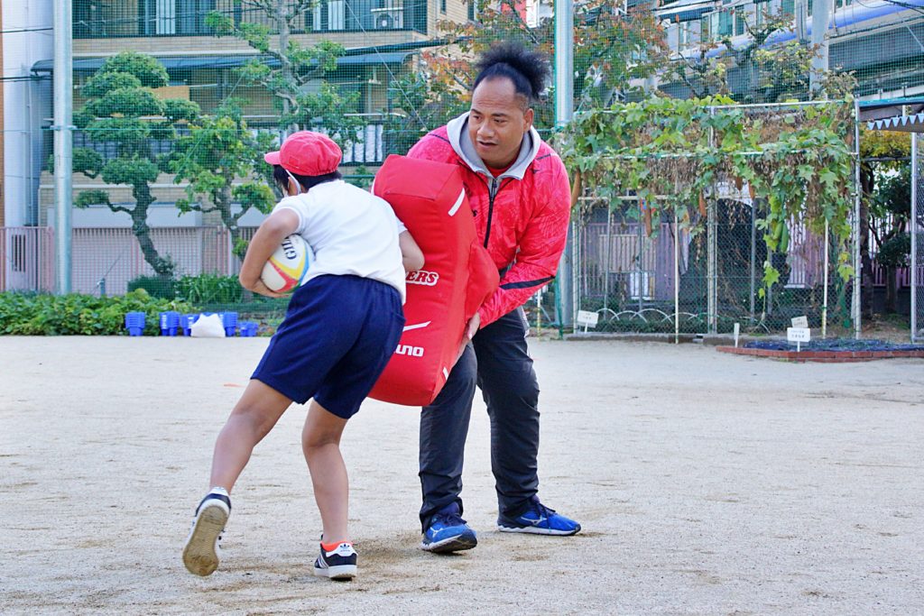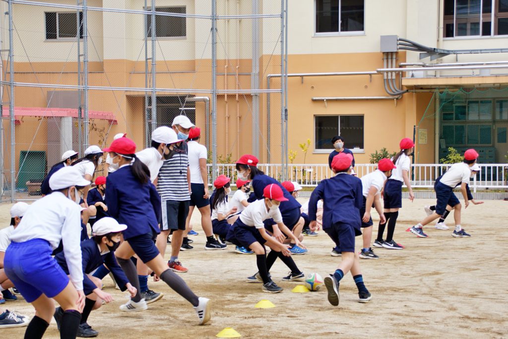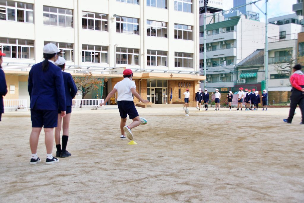 12月1日、大阪府が主導する「トップアスリート小学校ふれあい事業」の一環で、大阪市立上福島小学校にてラグビー体験を行いました。
