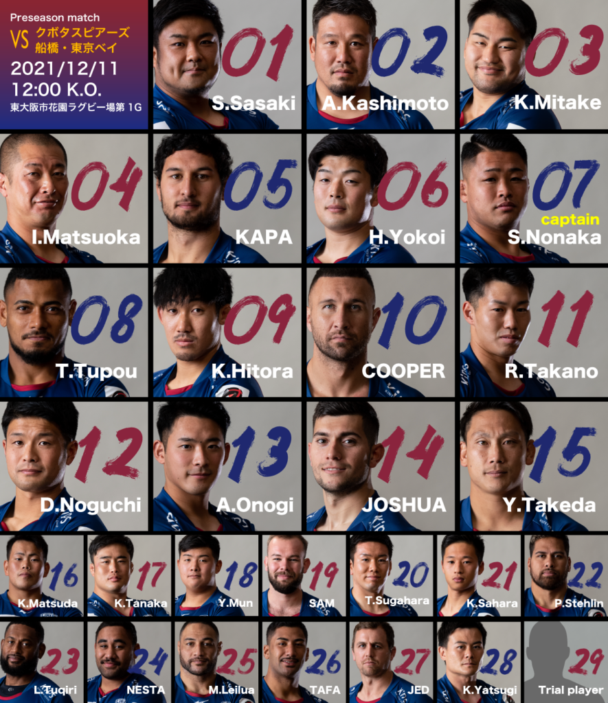 来る12月11日(土)12時00分キックオフのクボタスピアーズ船橋・東京ベイ戦のご案内をいたします。