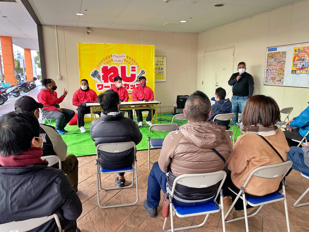はじめにトークショーを、その後は同じく花園を拠点に活動する06BULLSさん、東大阪のYouTuber・くぼゆかチャンネルのお二人と「ねじ寸切り対決」を行いました。