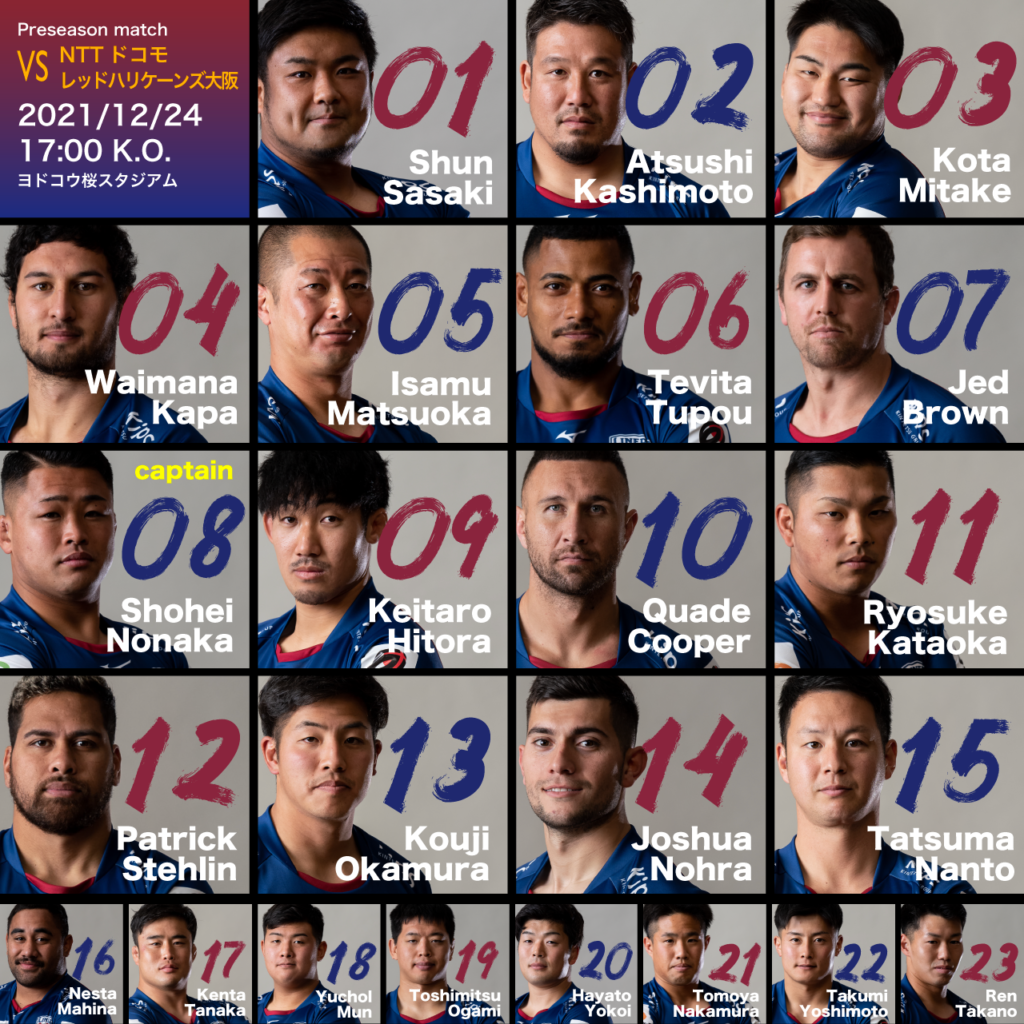 ※その他詳細はNTTドコモレッドハリケーンズ大阪のホームページ内、12月24日のプレシーズンマッチに関するお知らせをご確認ください。