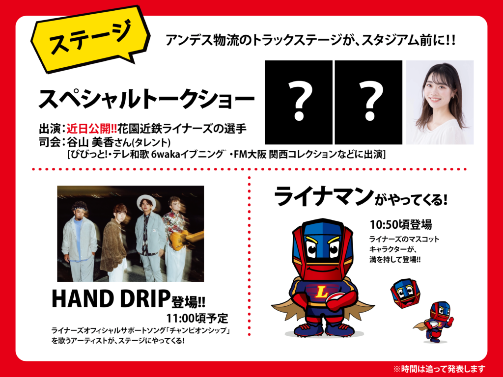 試合開始前11時頃から、アンデス物流様ご提供のスペシャルステージにて、HAND DRIPのメンバーが楽曲に込めた思いなどを語るトークライブを行います。ぜひお越しください。