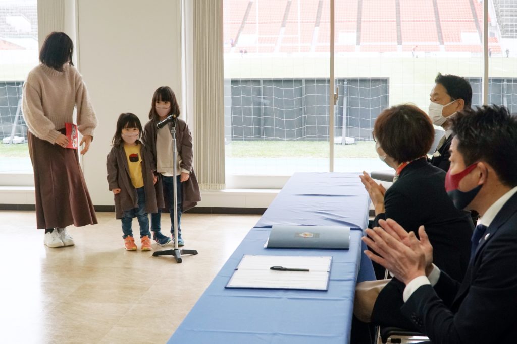 利用家族代表の方から試合ご招待の御礼メッセージをいただき、飯泉ゼネラルマネージャーが感涙する場面も見られました。