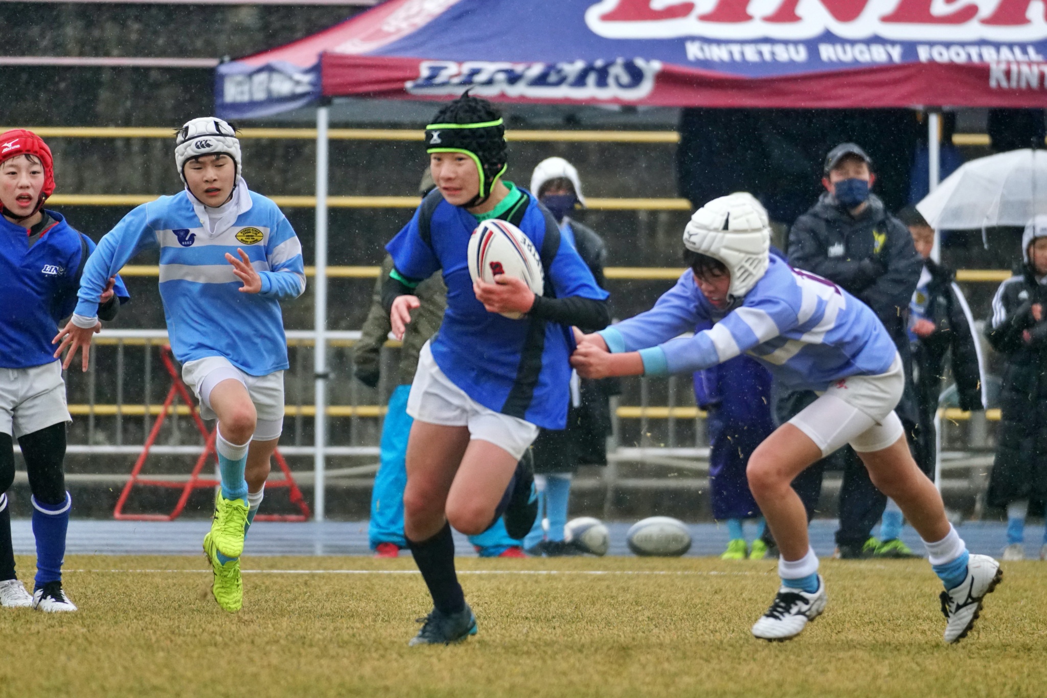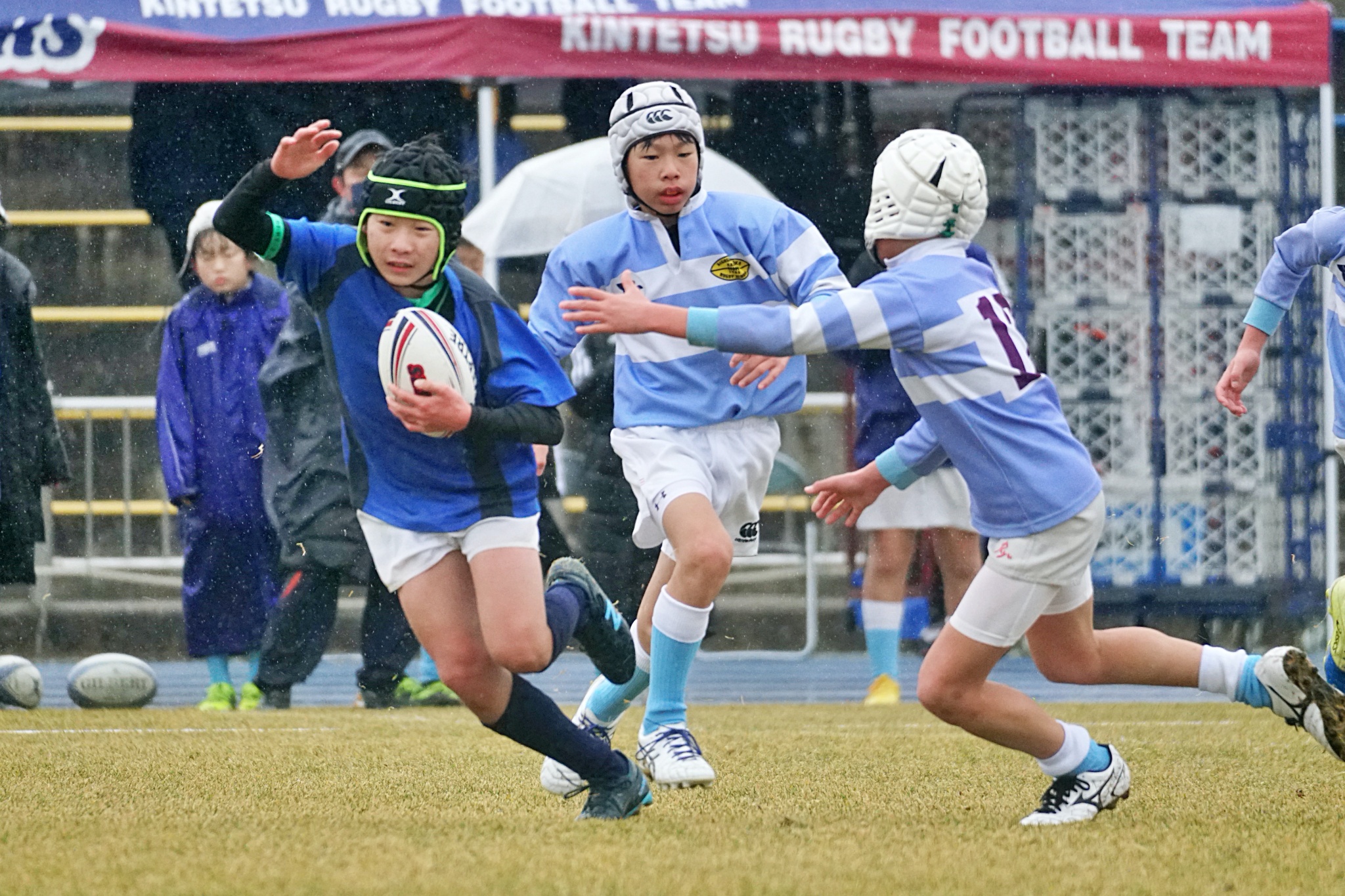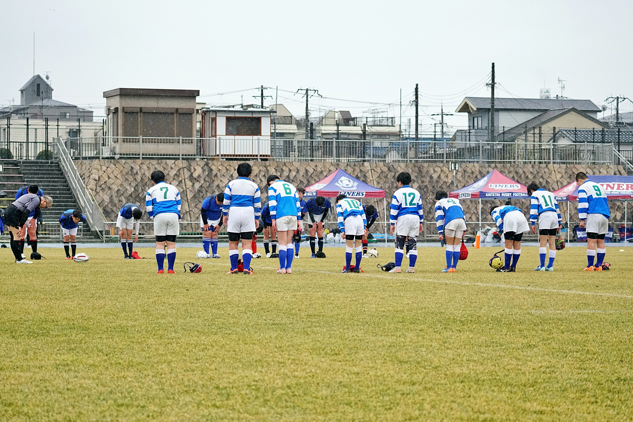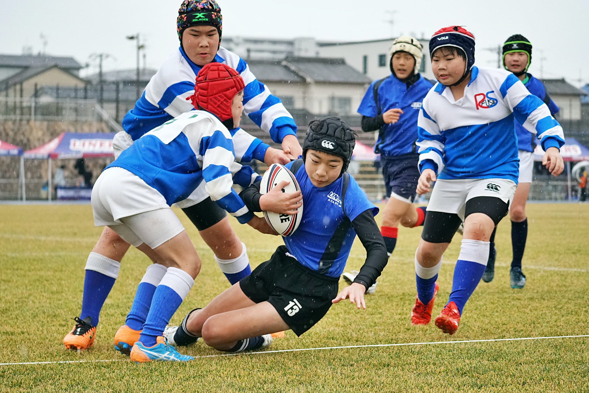 ライナーズアカデミー、東大阪KINDAIクラブラグビースクール、花園ラグビースクール、布施ラグビースクールの4チームの6年生が参加。