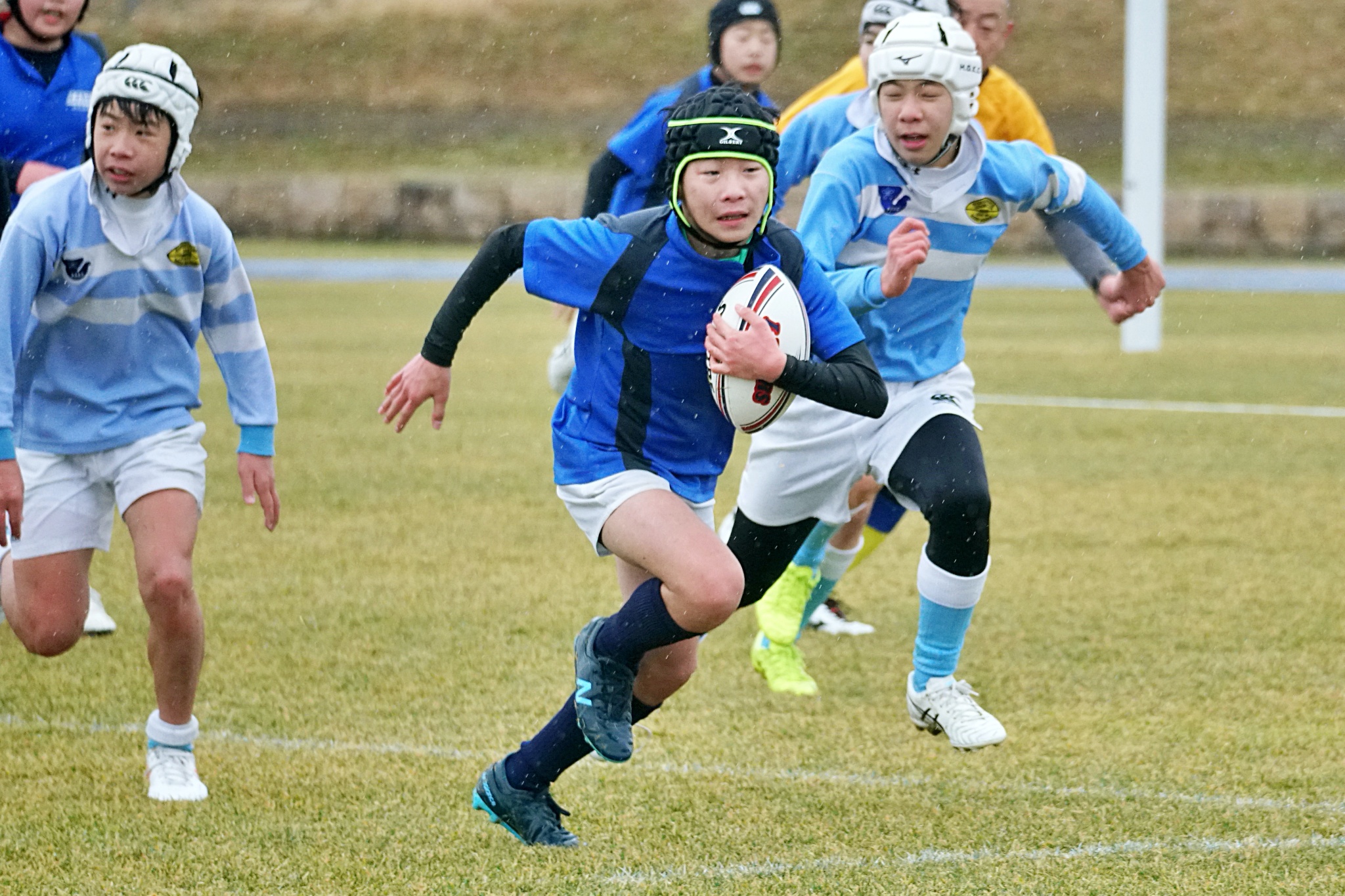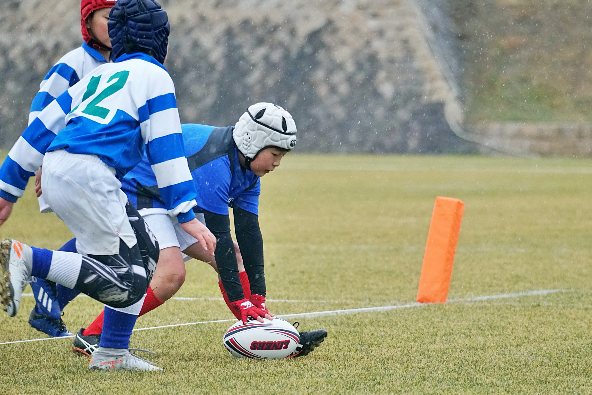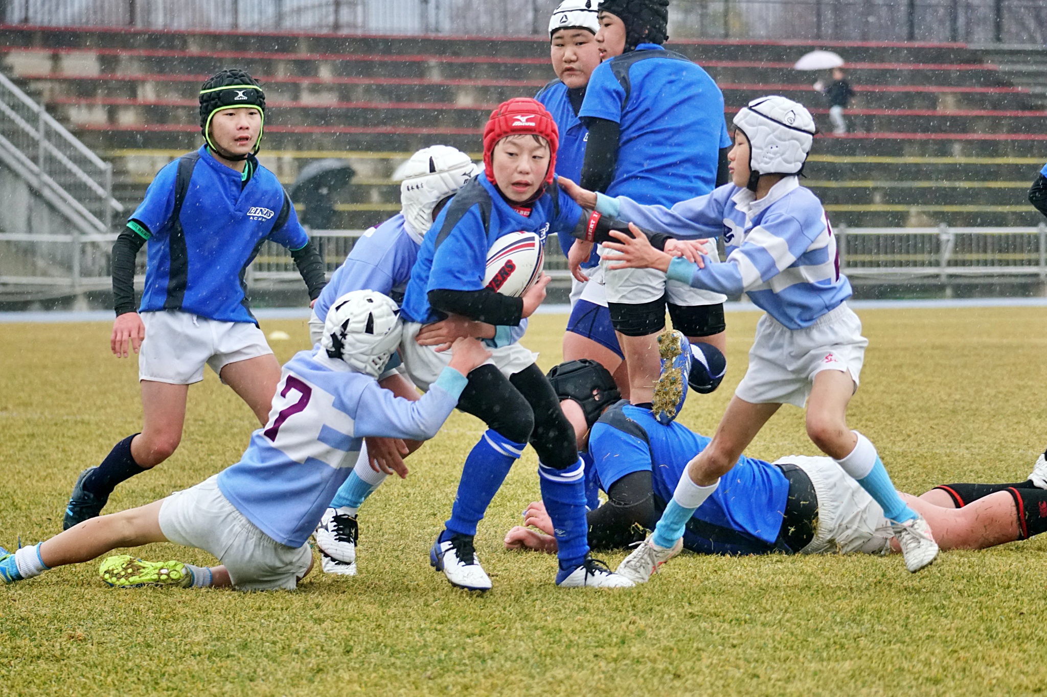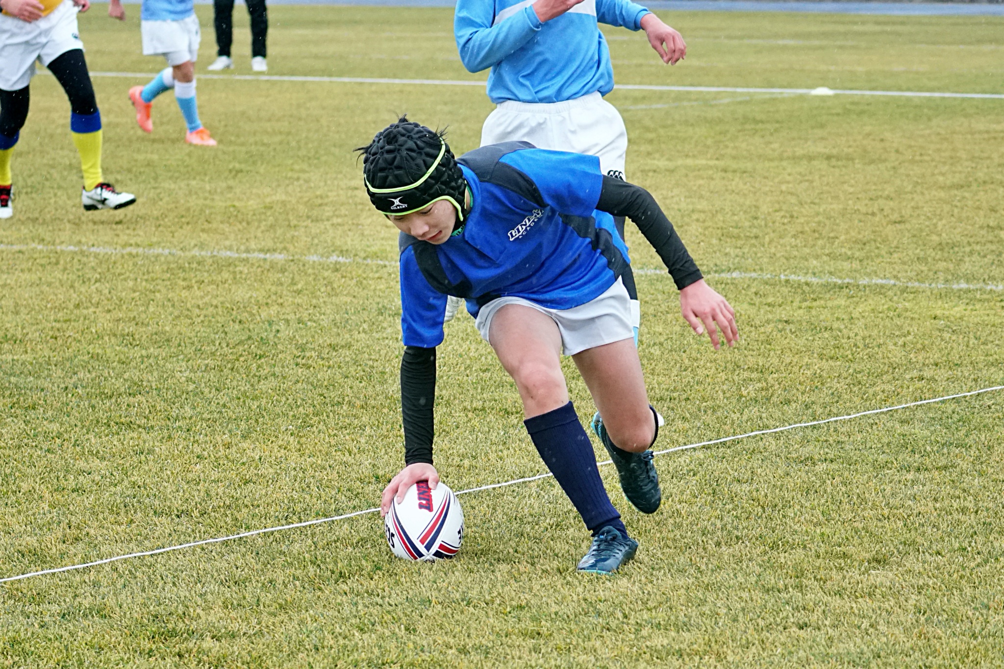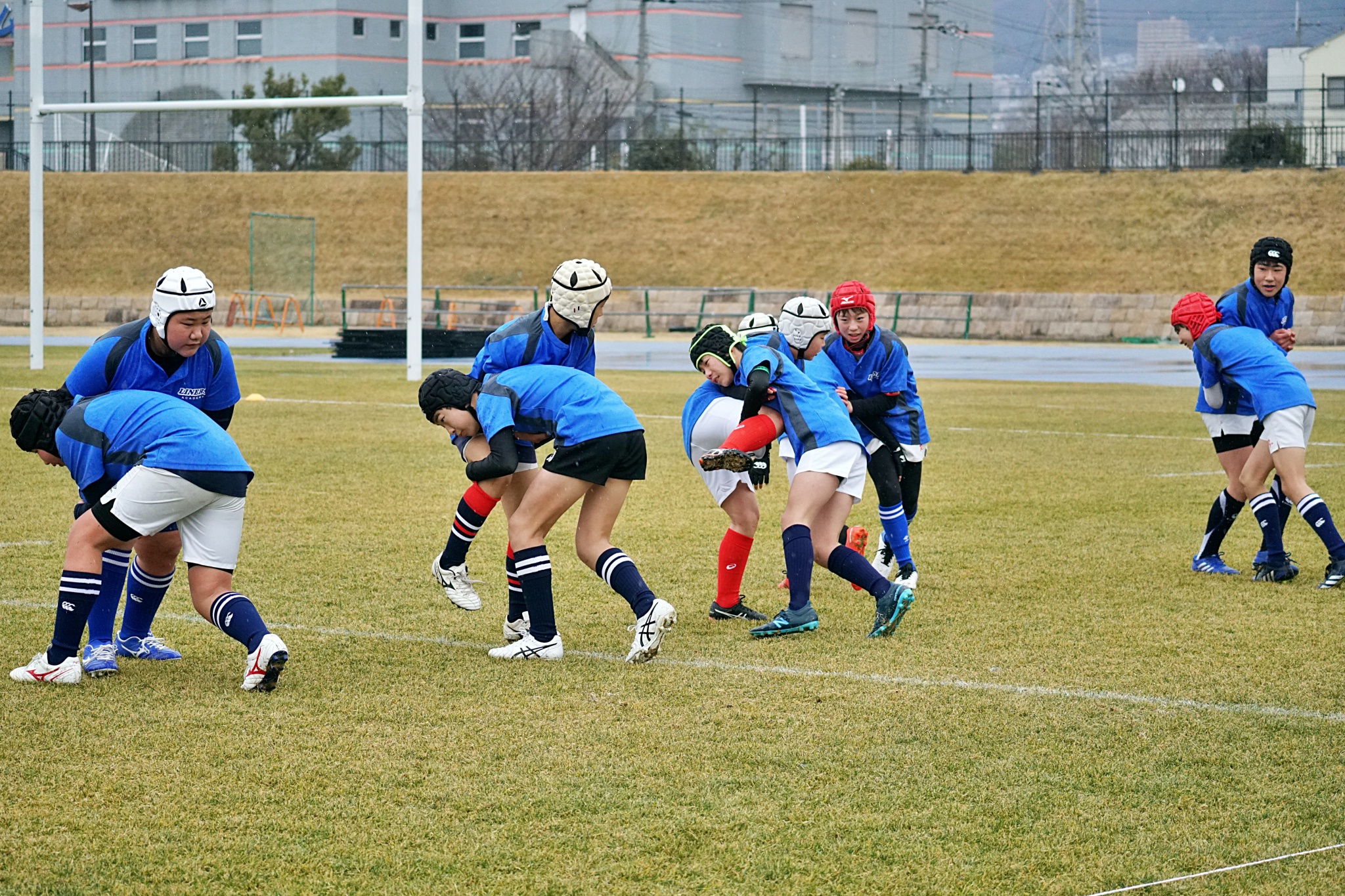 ライナーズアカデミー、東大阪KINDAIクラブラグビースクール、花園ラグビースクール、布施ラグビースクールの4チームの6年生が参加。