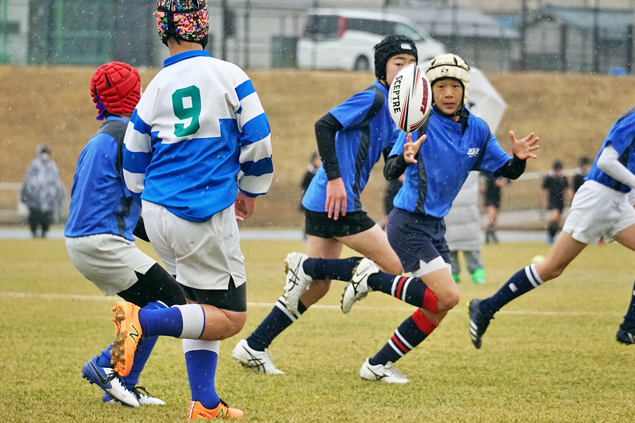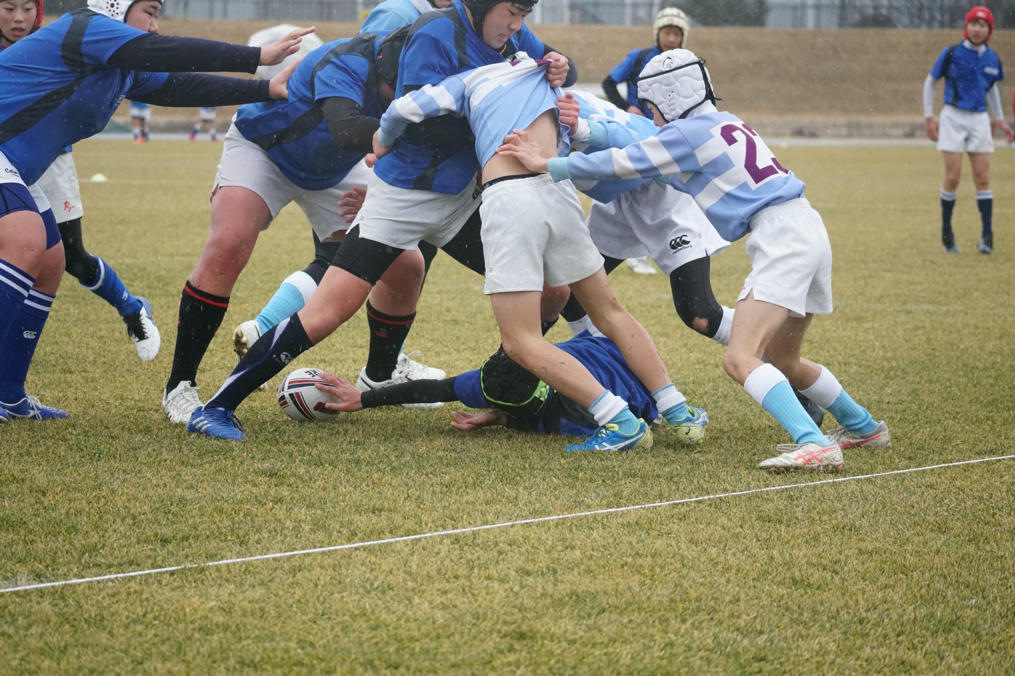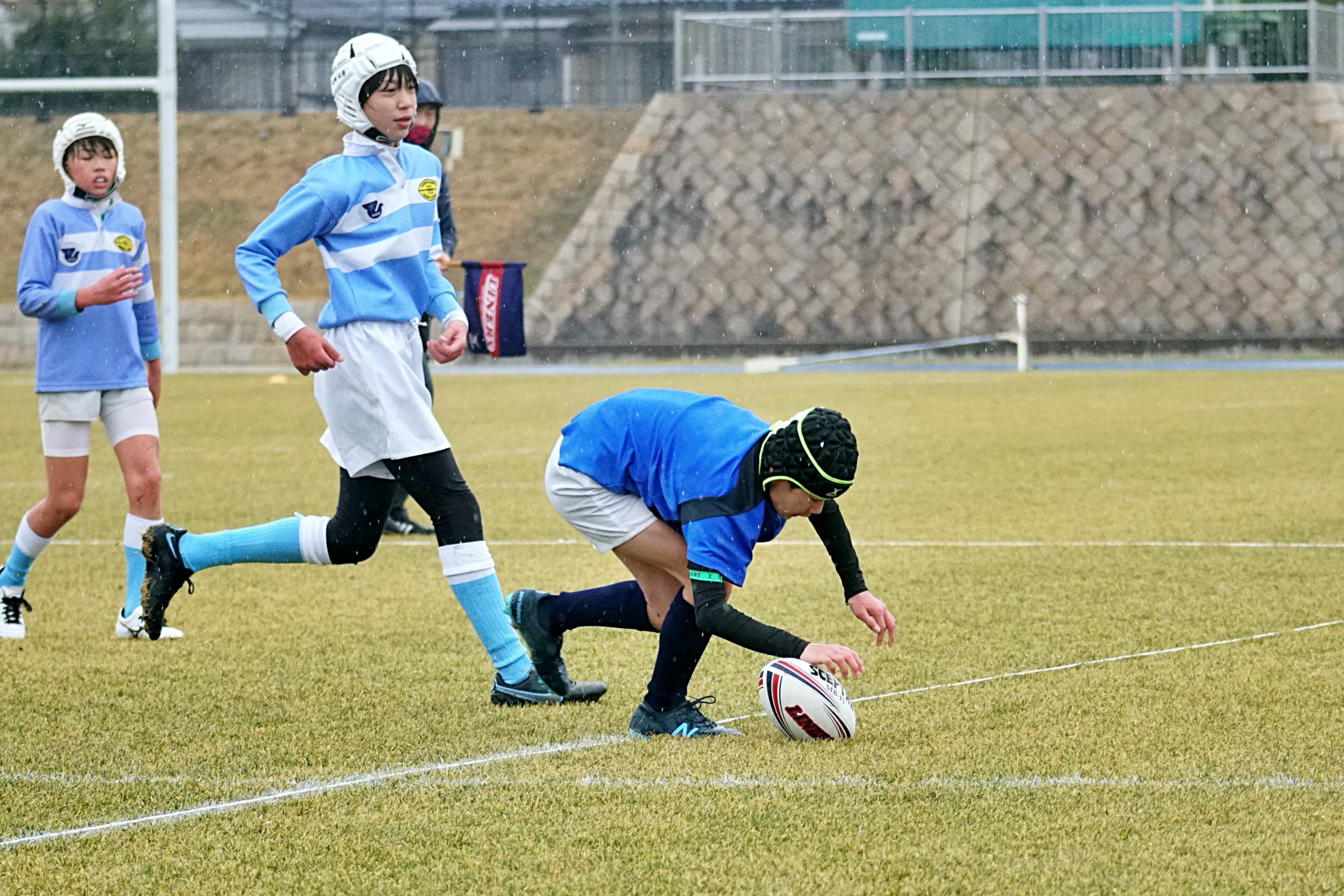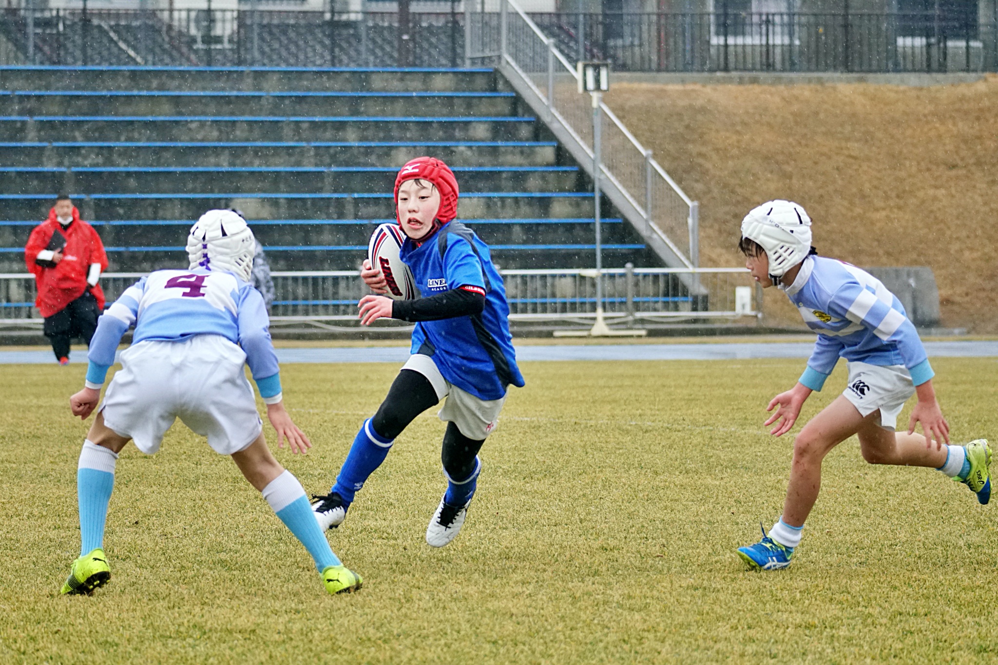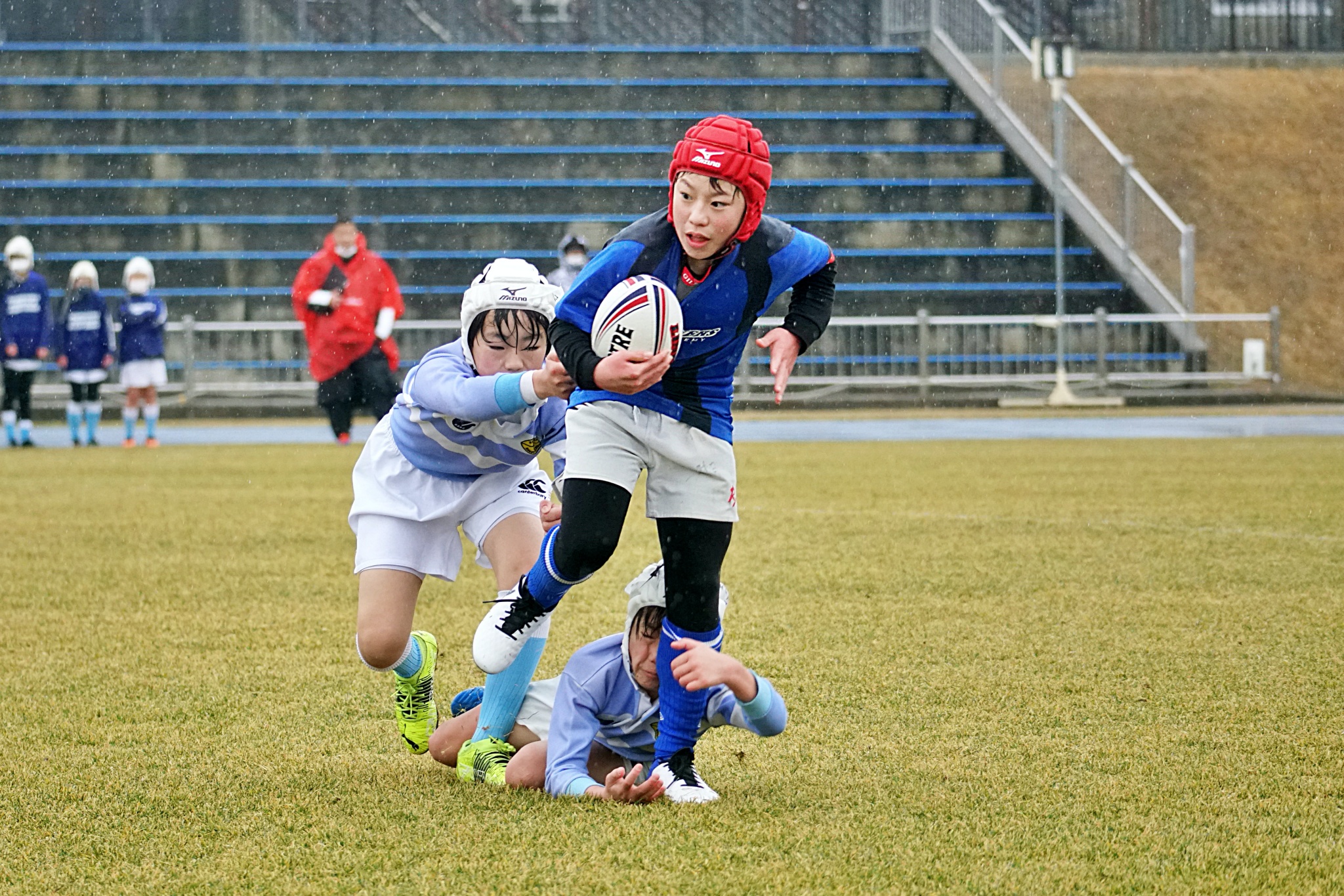 ライナーズアカデミー、東大阪KINDAIクラブラグビースクール、花園ラグビースクール、布施ラグビースクールの4チームの6年生が参加。