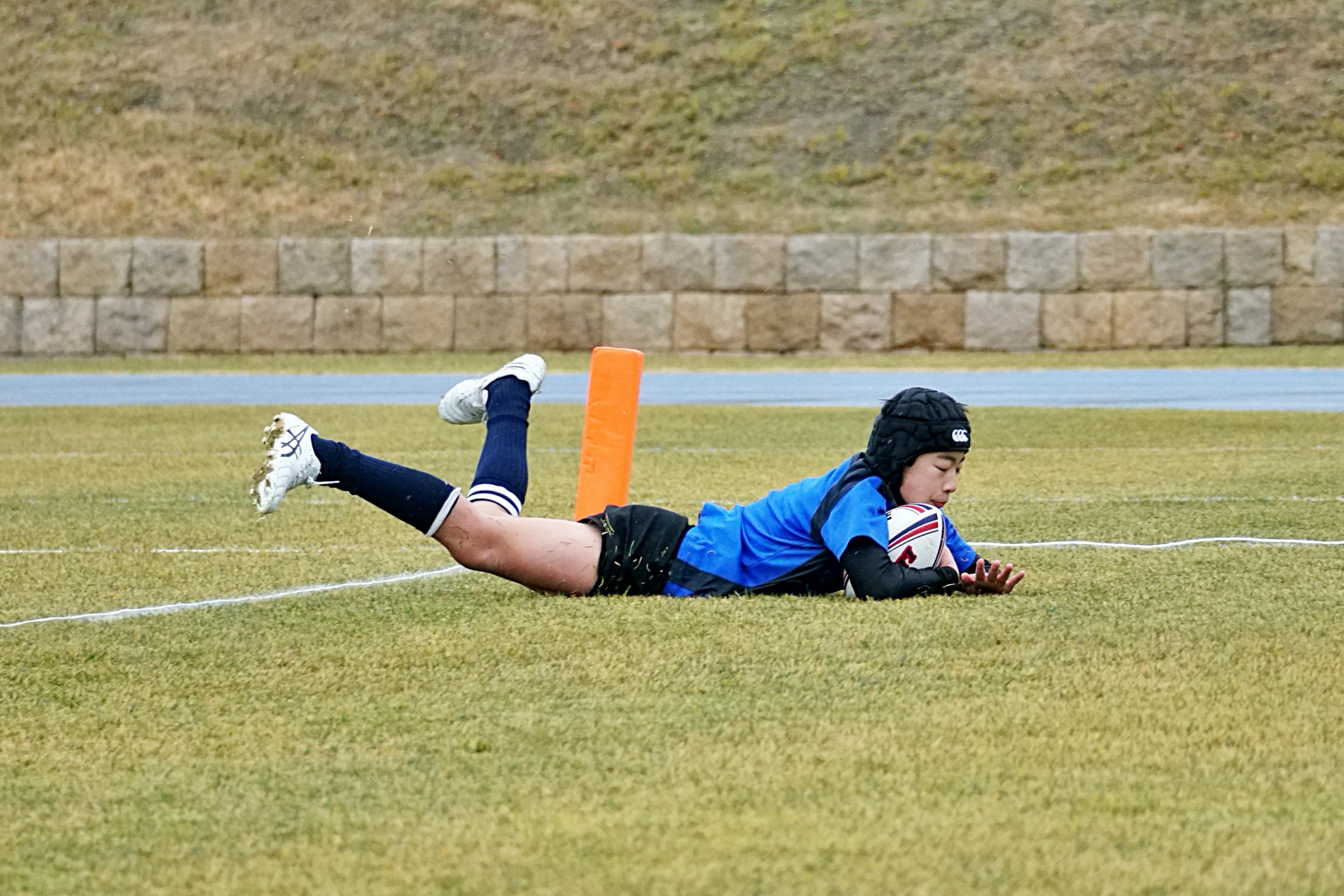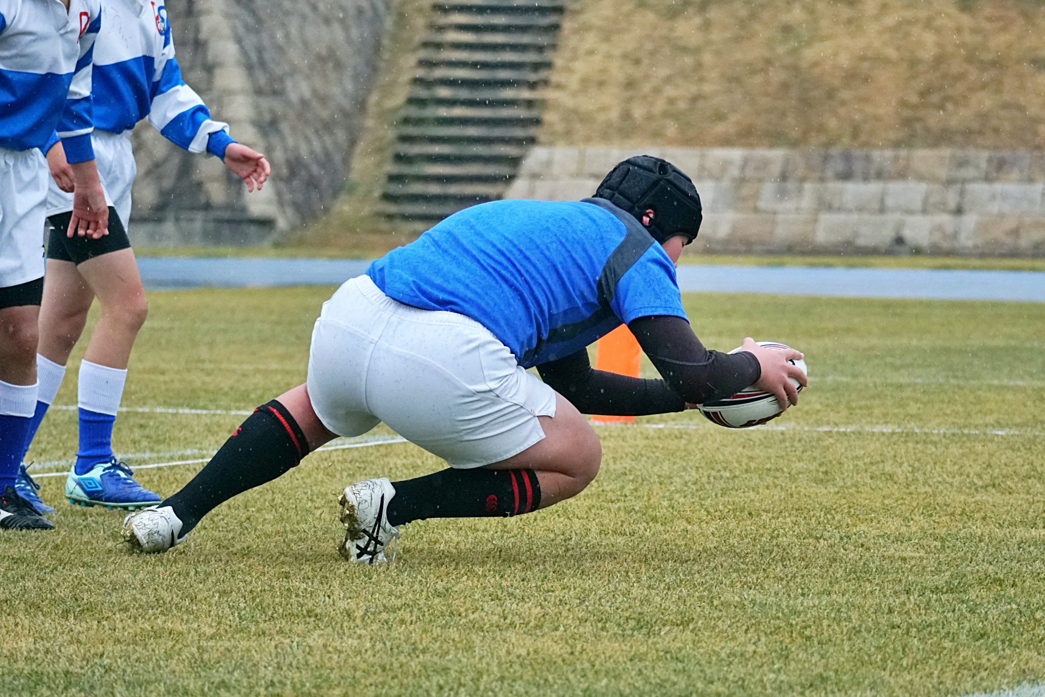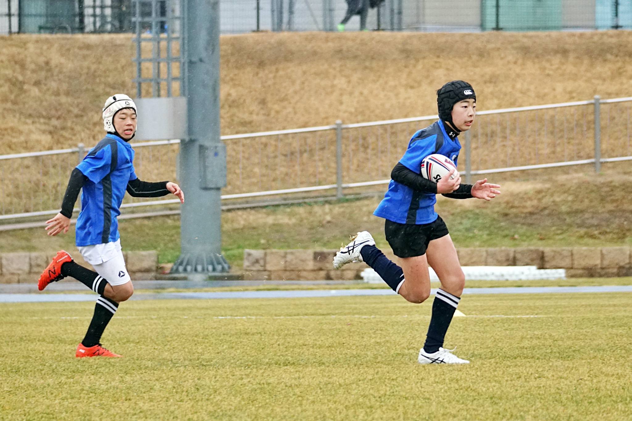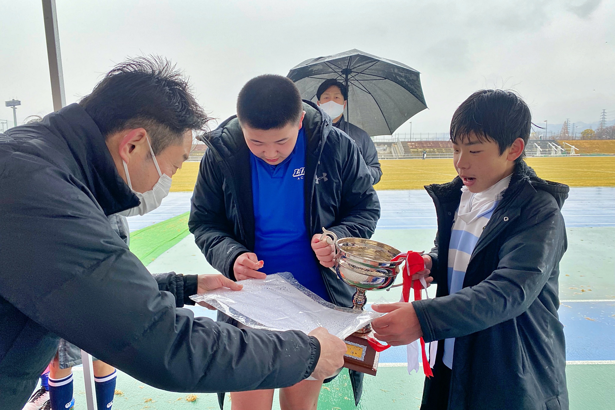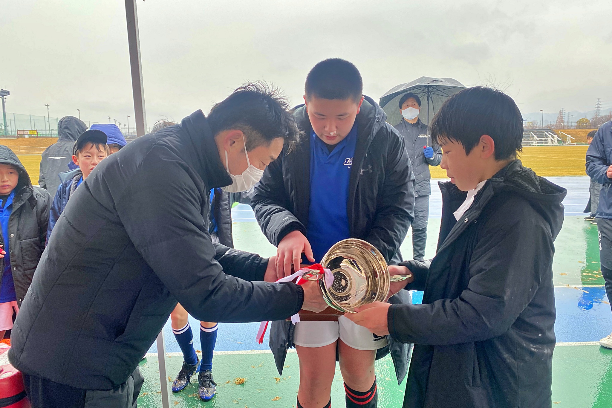 ライナーズアカデミーは1回戦で布施RSに勝利。決勝戦では東大阪KINDAIクラブRSと対戦し、お互いに4本ずつトライを奪い、同点優勝でした。