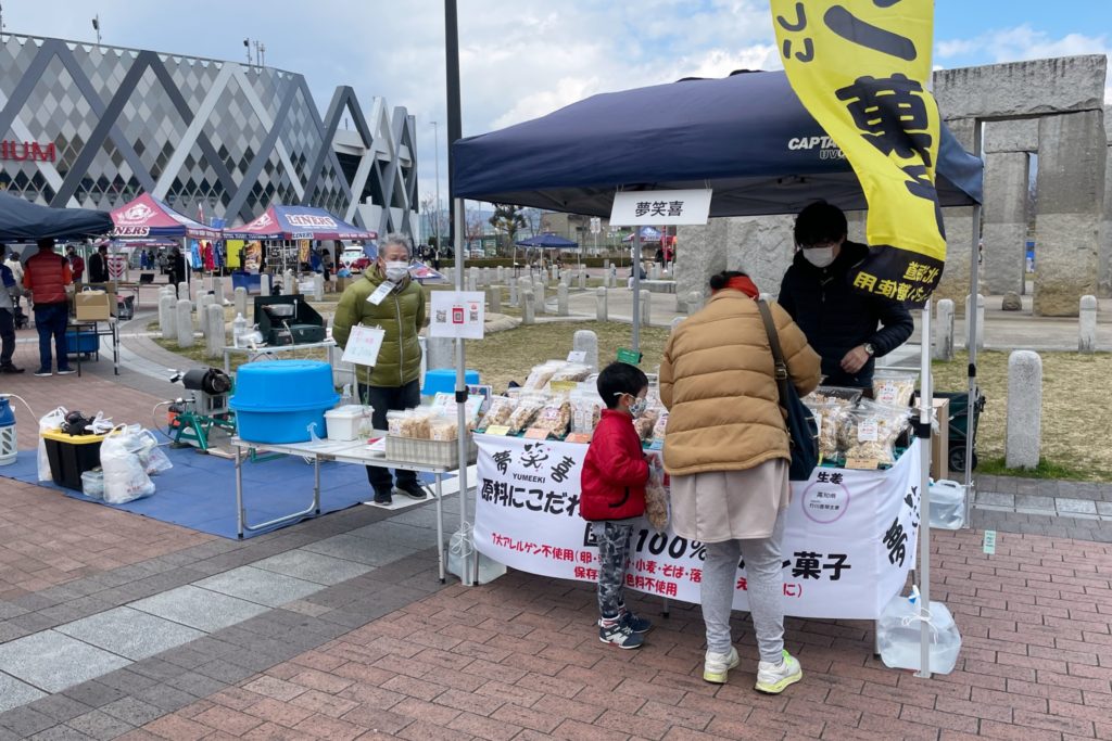 ライナーズと連携協定を結んでいる「大阪産(もん)」からブースが出店。地域の特産物や名物がずらりと並び、お土産に購入する人の姿も見えました。