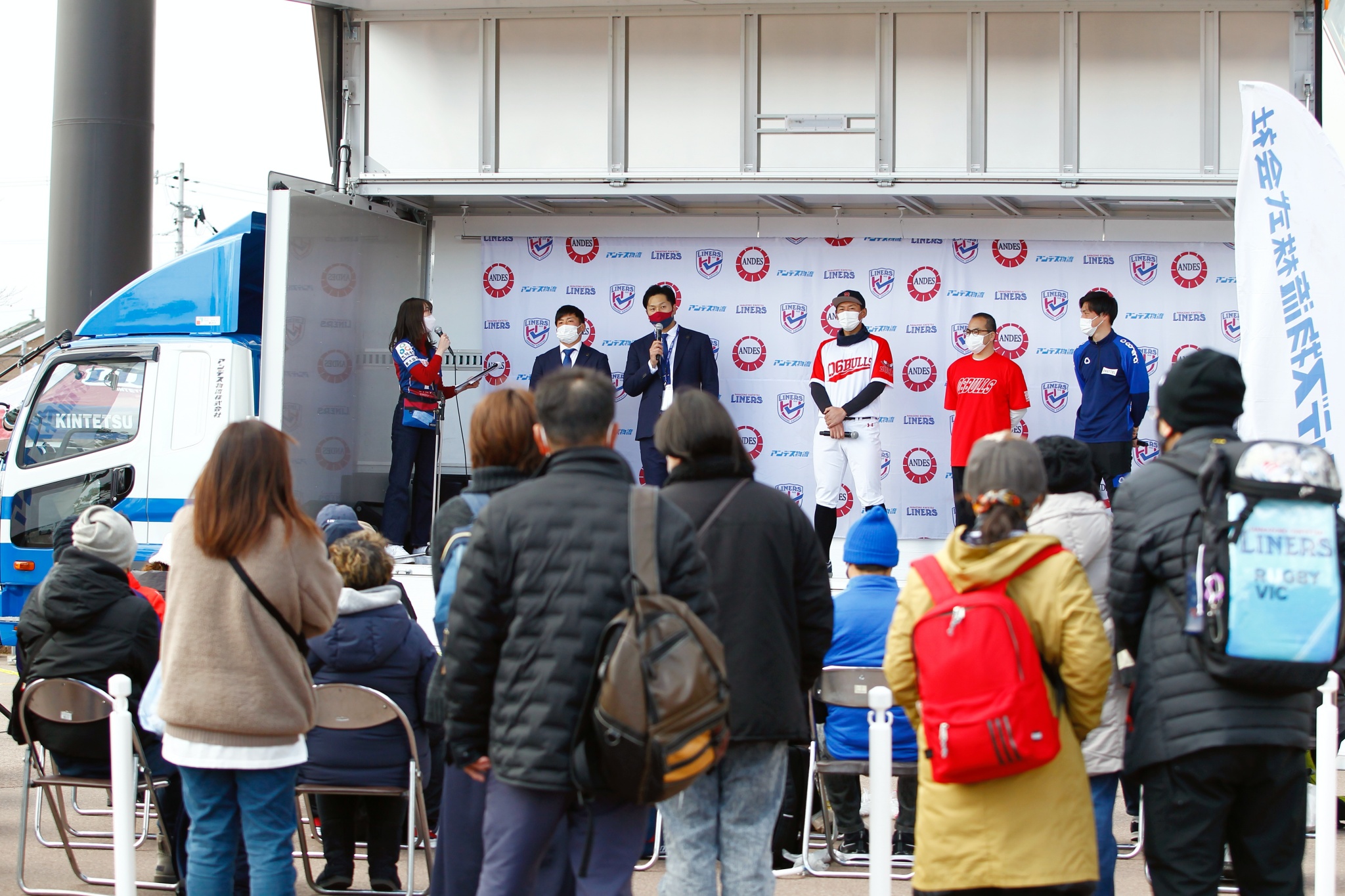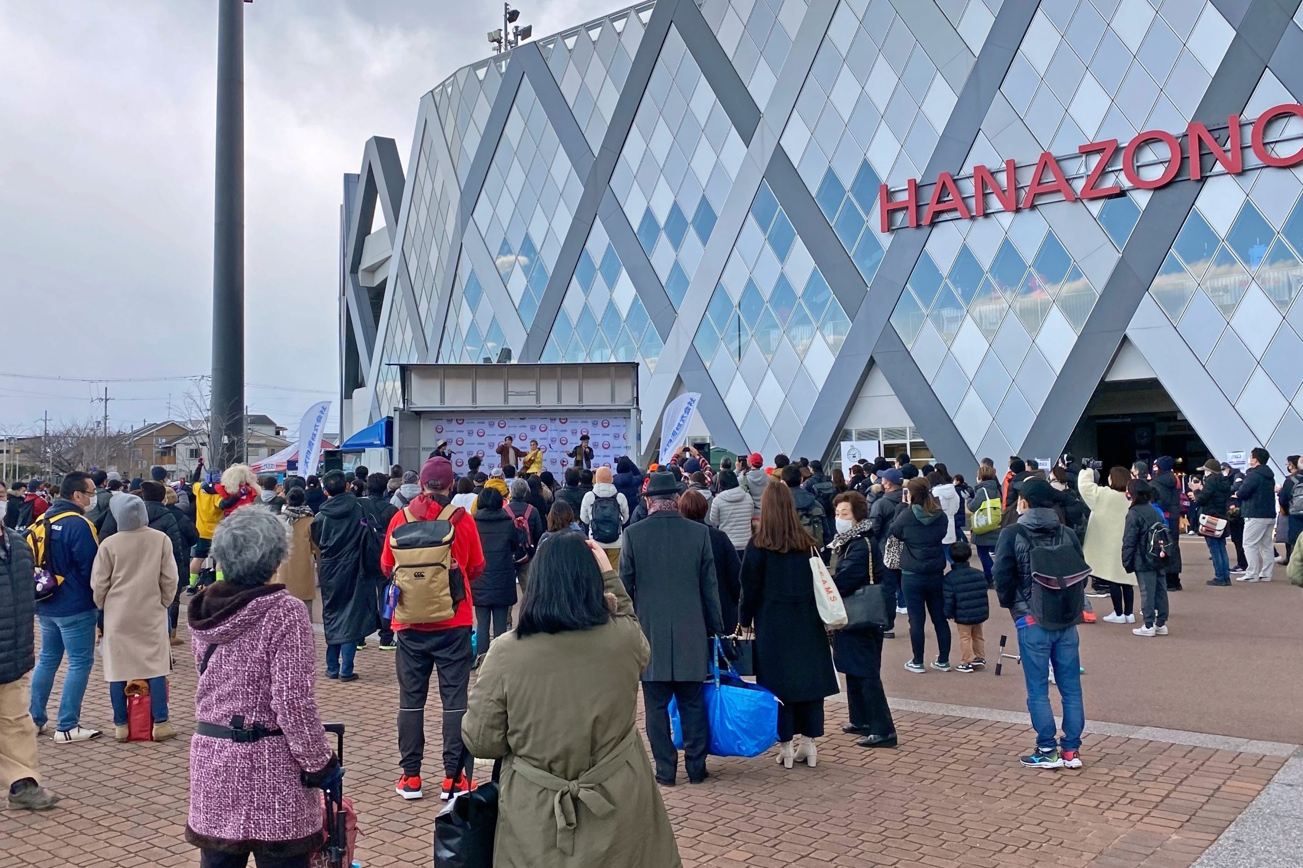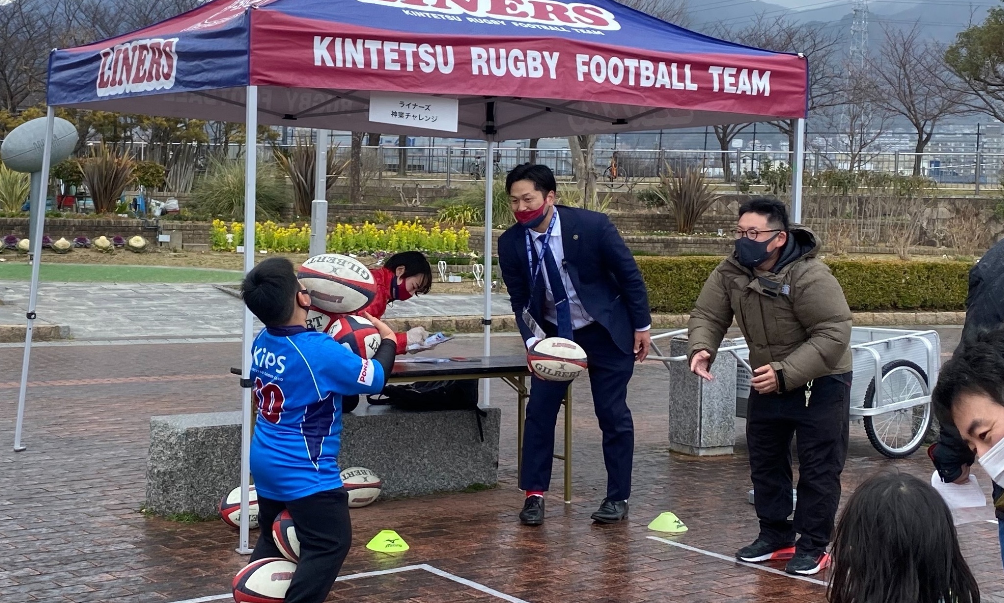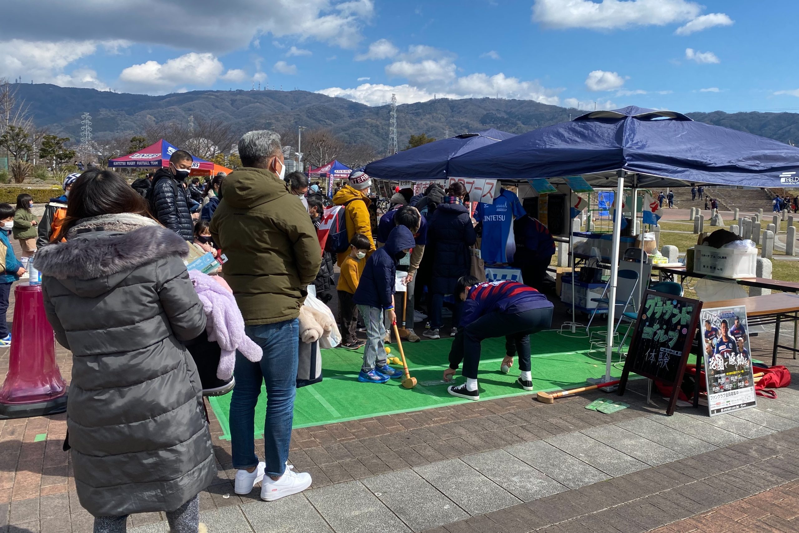 3月6日、NTTジャパンラグビー リーグワン2022 DIVISION2 第6節 マツダスカイアクティブズ広島戦に合わせ、東大阪市花園ラグビー場前の噴水広場にてライナーズ主催のイベント「花園ハッピーパーク」を開催しました。