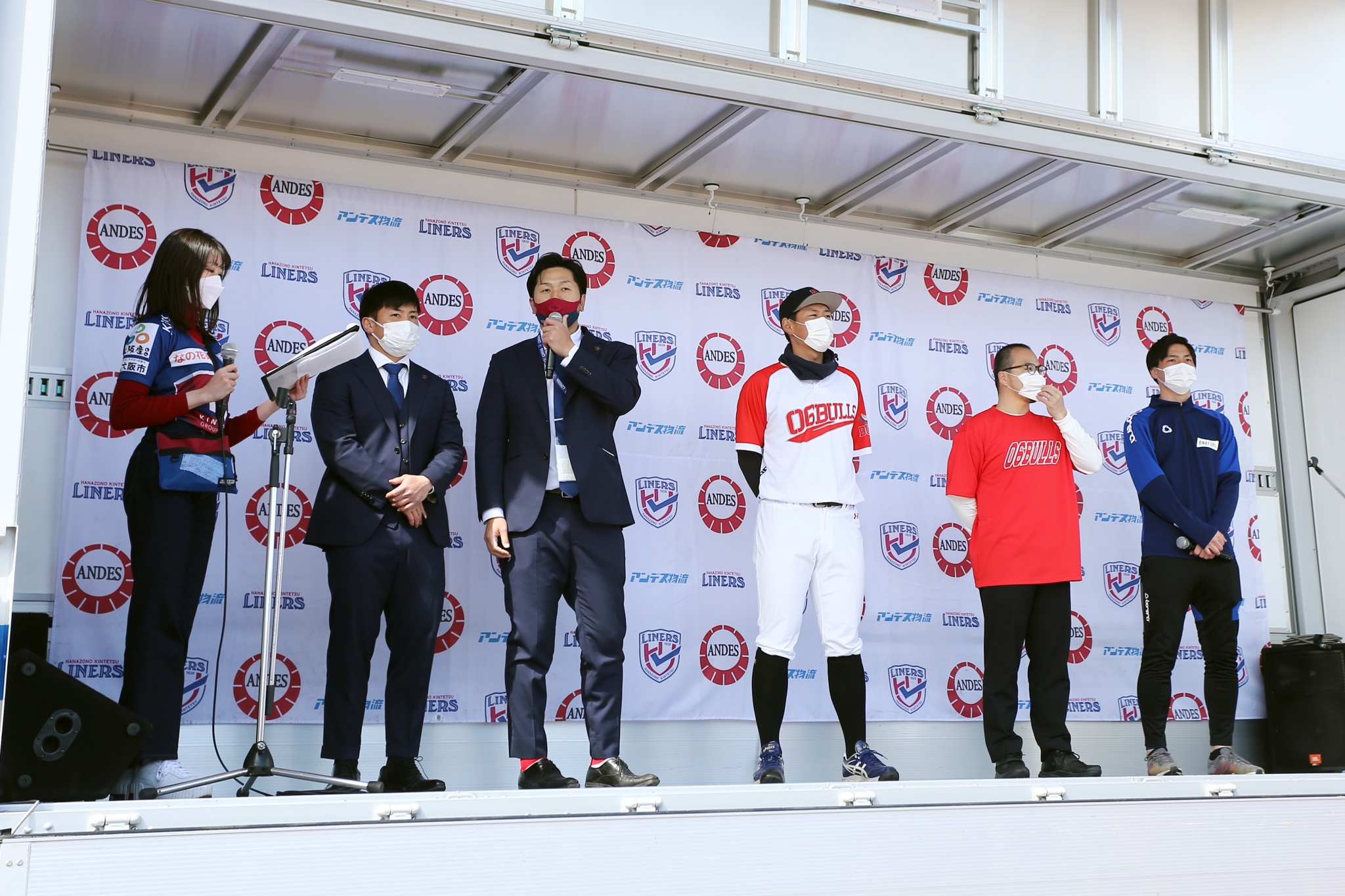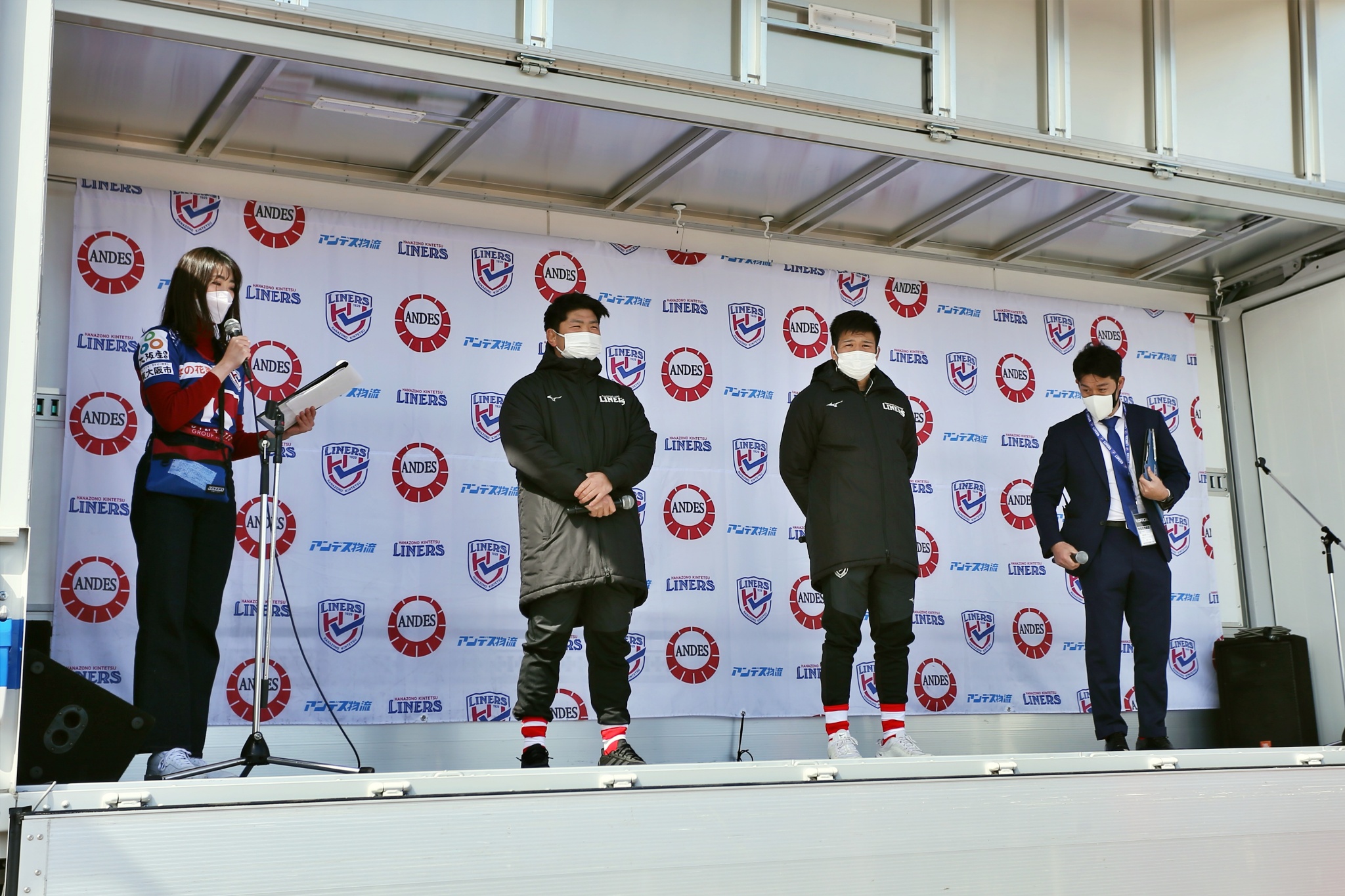 司会は前回に引き続き、タレントの谷山美香さん。2022年度4月からライナーズに新加入する河村謙尚選手と上山黎哉選手のトークショー、ライナーズオフィシャルサポートソングを歌うアーティスト「HANDDRIP」のミニライブ&トークを行いました。