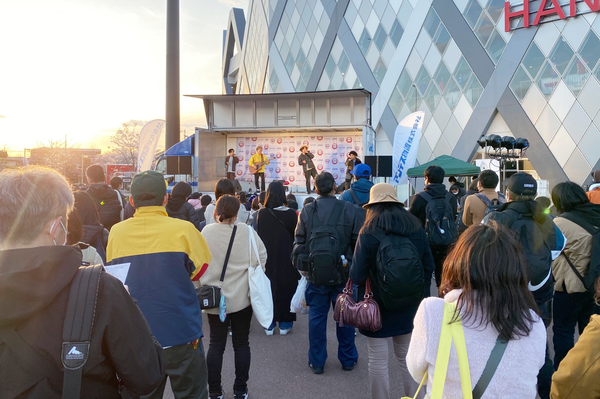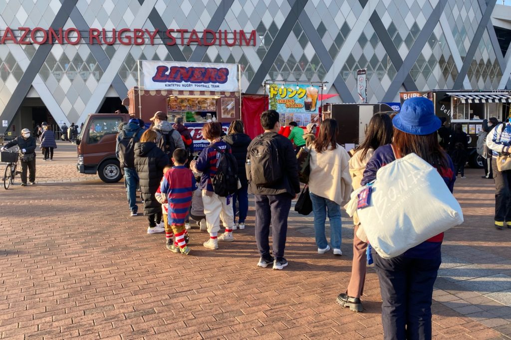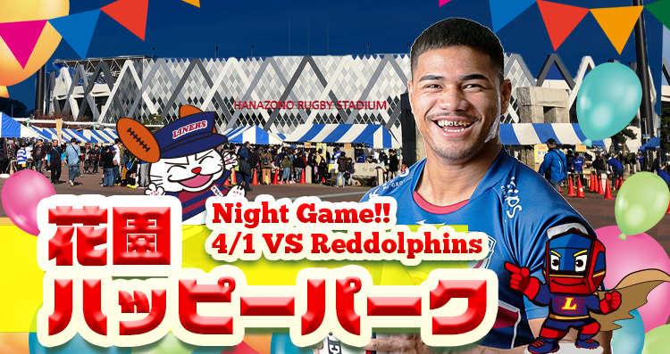 4月1日、NTTジャパンラグビー リーグワン2022 DIVISION2 第9節 日野レッドドルフィンズ戦に合わせ、東大阪市花園ラグビー場前の噴水広場にてライナーズ主催のイベント「花園ハッピーパーク」を開催しました。