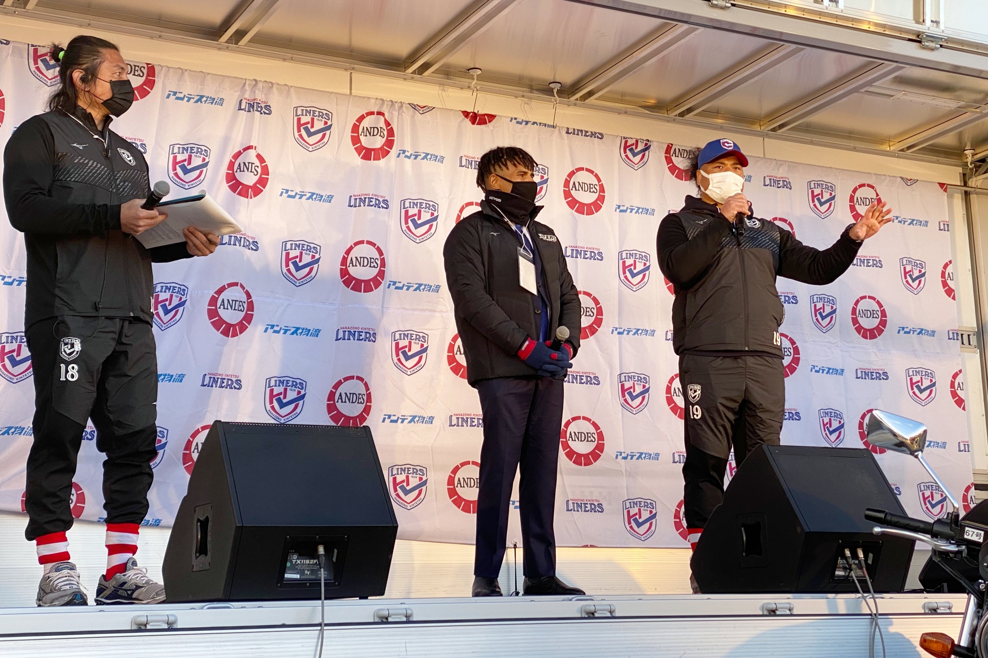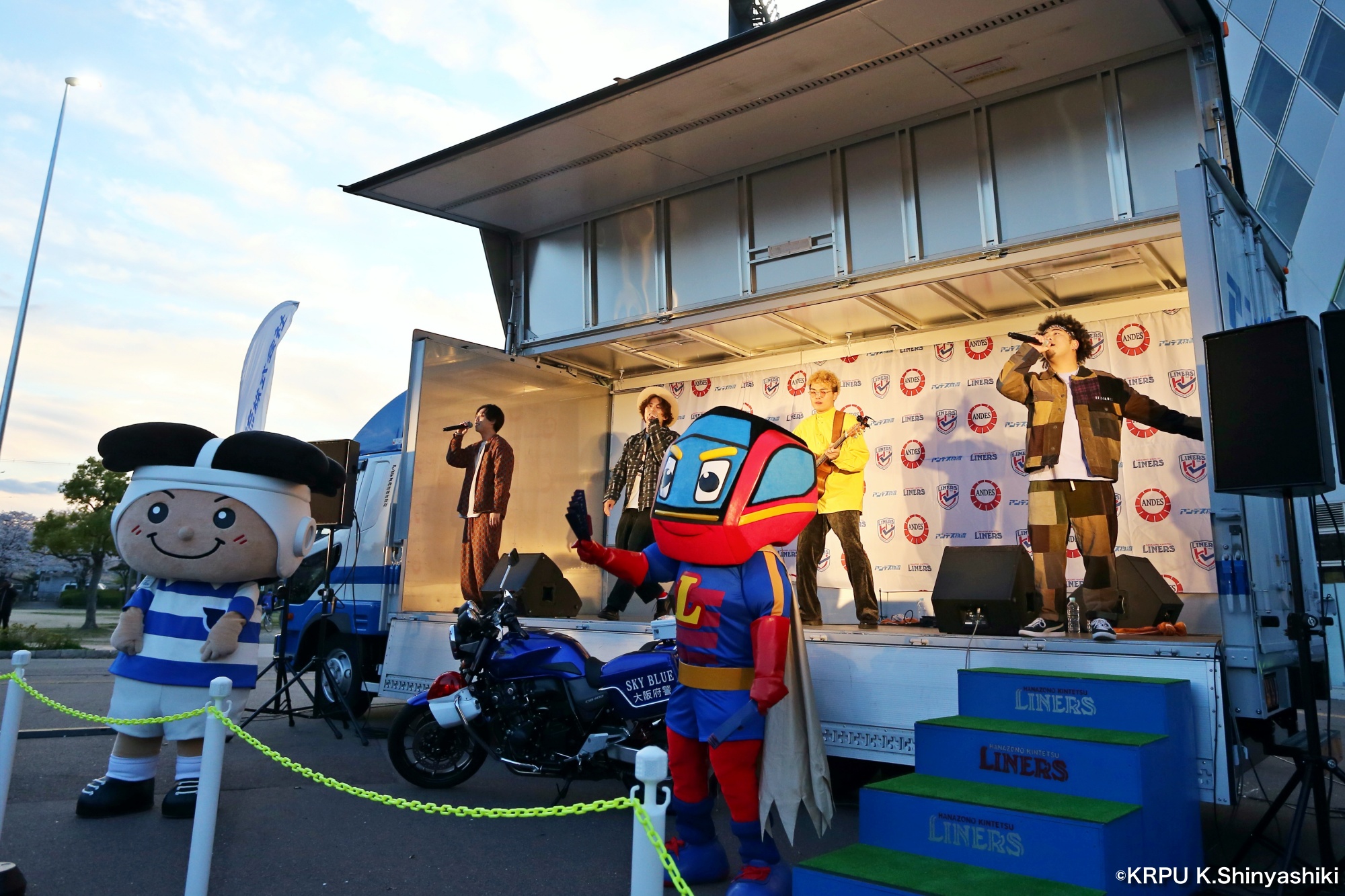 「ライナーズスペシャルステージ supported by アンデス物流」と題し、スタジアム前にトラックステージが登場。