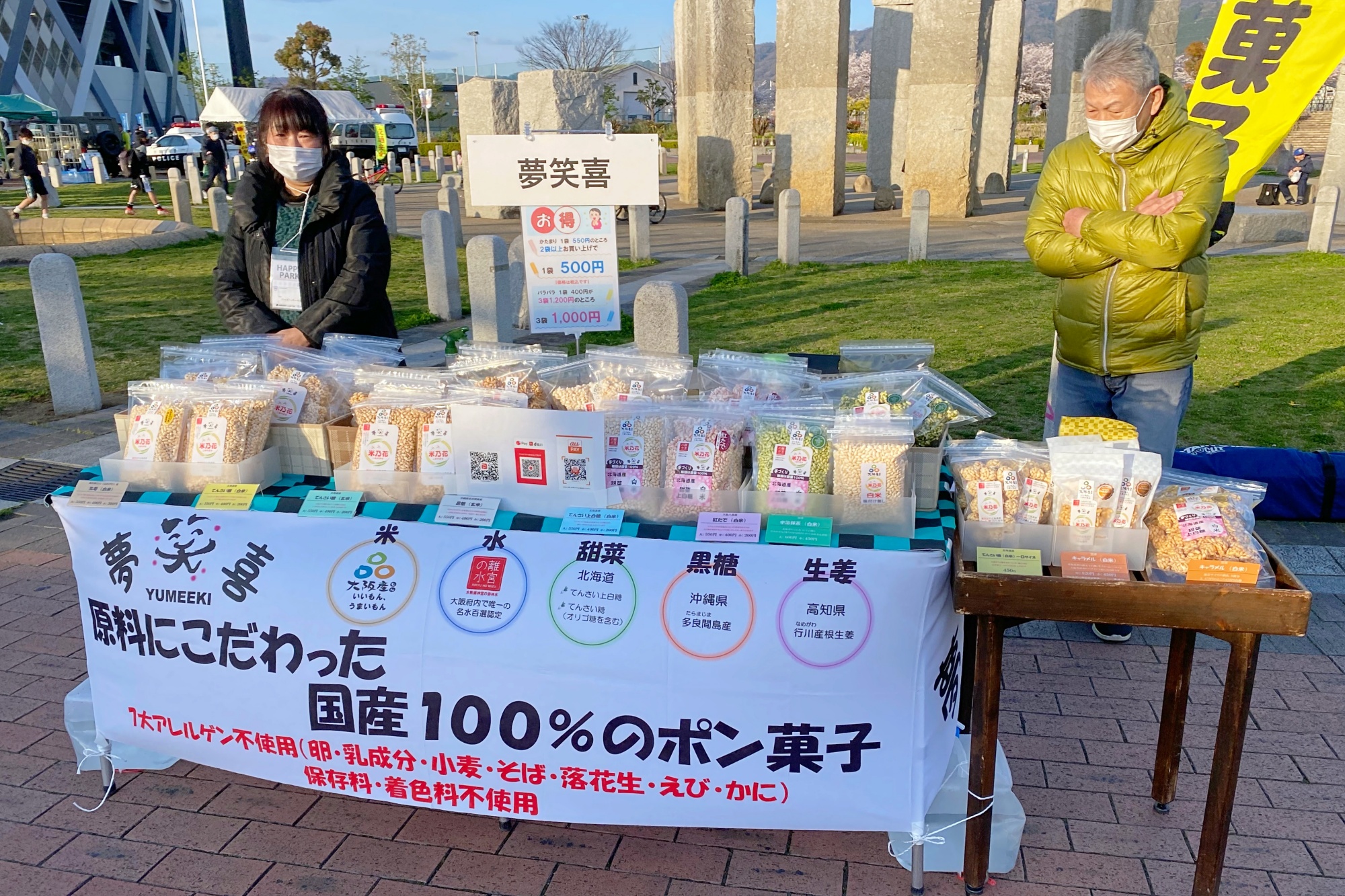 ライナーズと連携協定を結んでいる「大阪産(もん)」からブース出店。地域の特産物や名物がずらりと並びました。