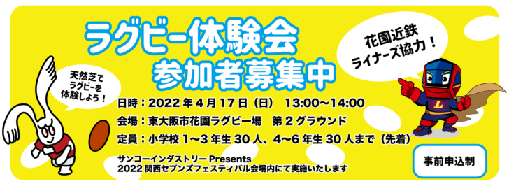 サンコーインダストリー Presents 2022 関西セブンズフェスティバル 花園近鉄ライナーズ協力イベント開催のお知らせ