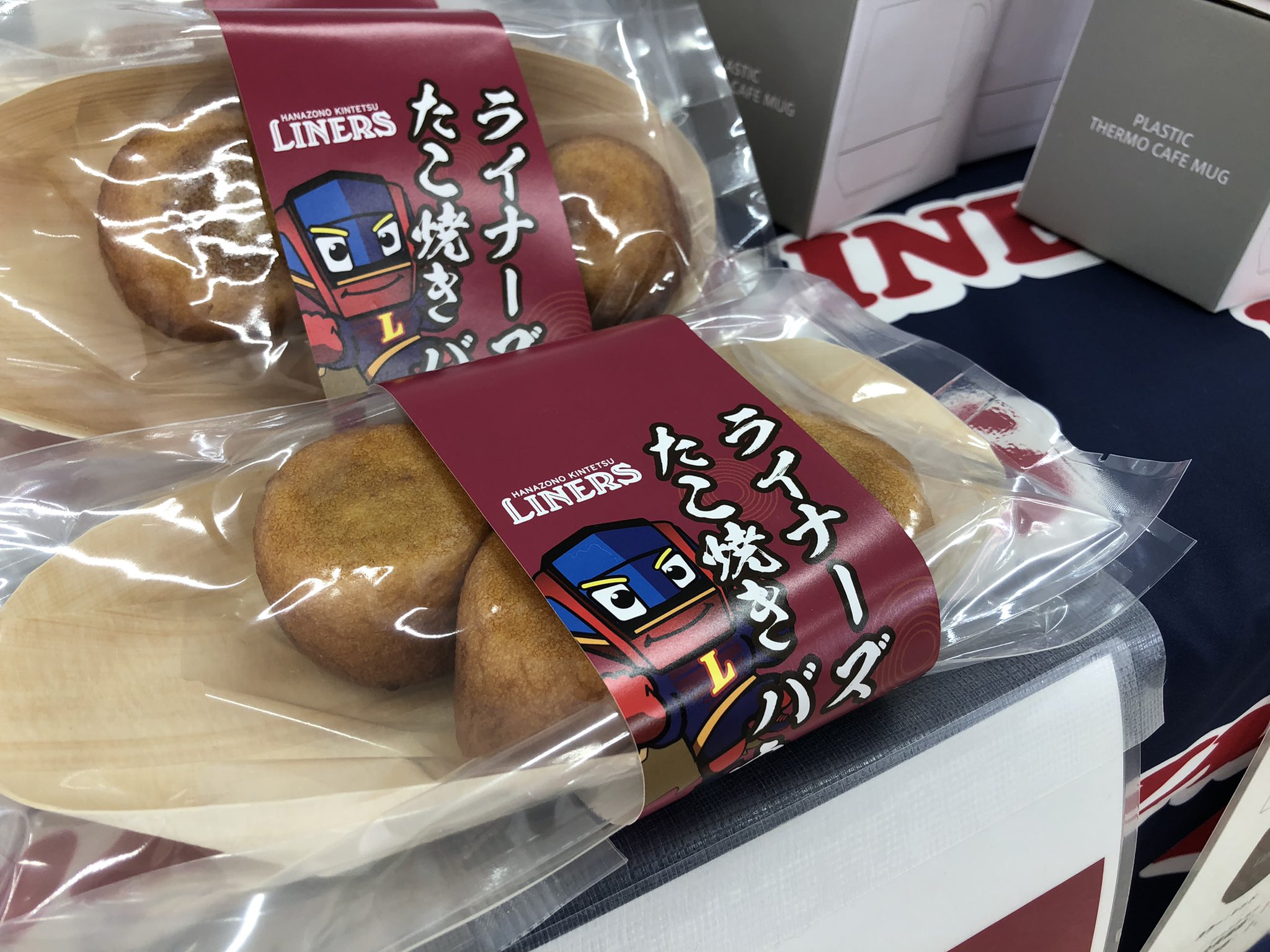 「ライナーズたこやきバウム」はたこ焼き形のバウムクーヘン。通常648円を、ワンコインの500円にて販売いたします。