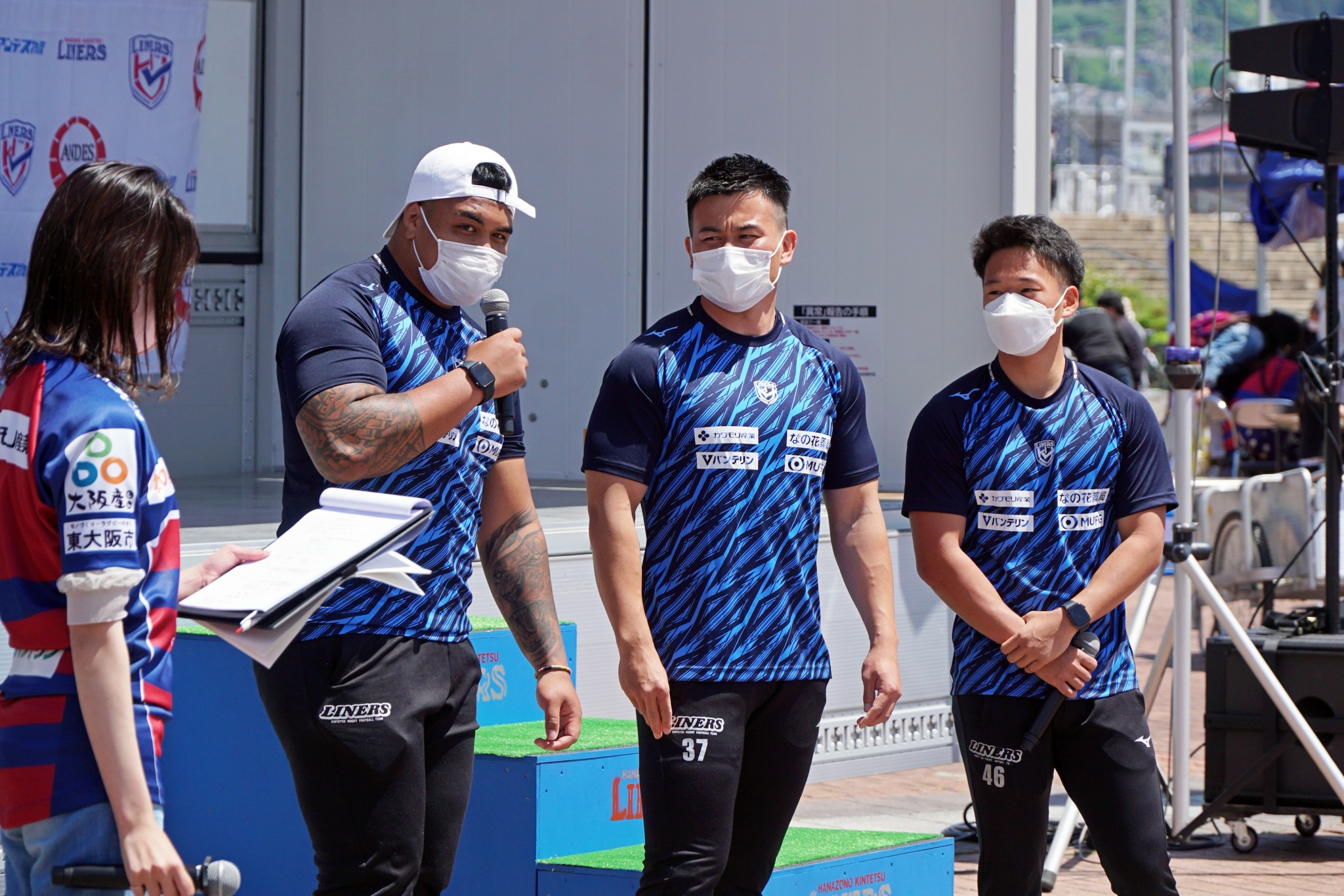 4月30日、NTTジャパンラグビー リーグワン2022 DIVISION2 順位決定戦第2節 三重ホンダヒート戦に合わせ、東大阪市花園ラグビー場前の噴水広場にてライナーズ主催のイベント「花園ハッピーパーク」を開催しました。