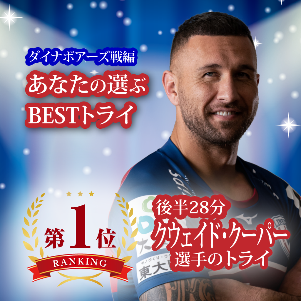試合後、花園近鉄ライナーズ新LINE限定企画「あなたの選ぶBESTトライ」をLINE登録者様限定で実施し、332票の投票をいただきました。結果は以下の通りです。