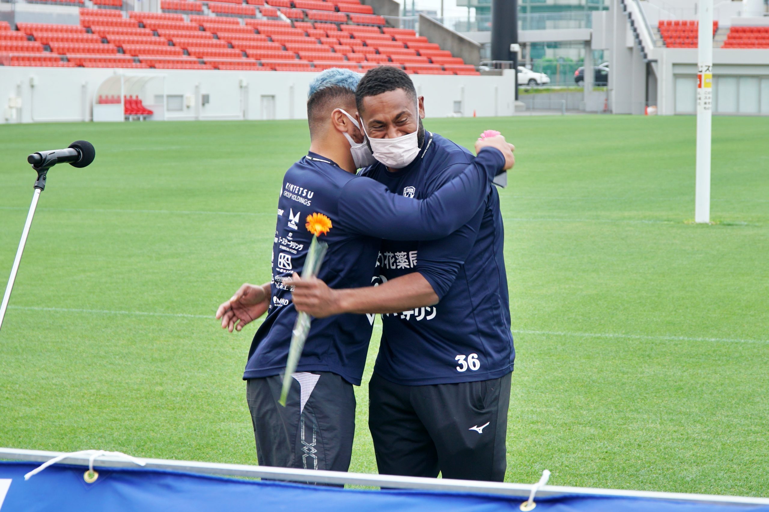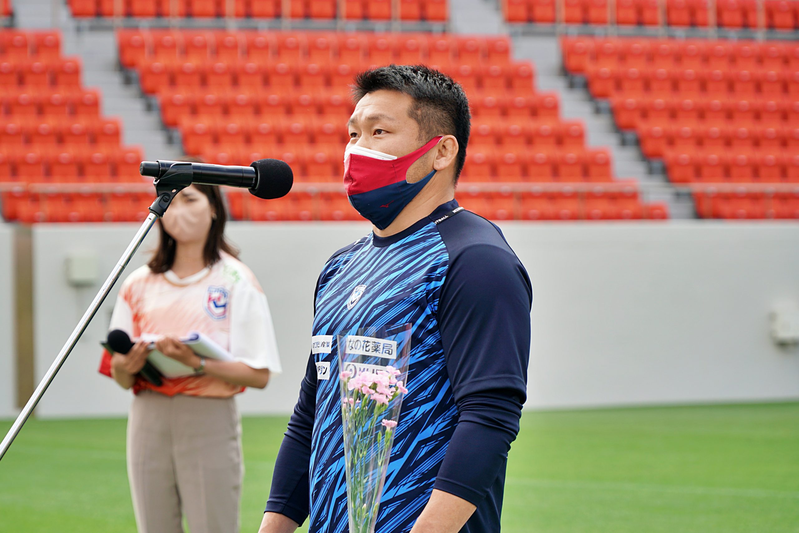 今シーズン勇退する選手9名のセレモニーを実施しました。それぞれの選手にはアテンダーの選手が1人つき、感謝の気持ちを伝えました。