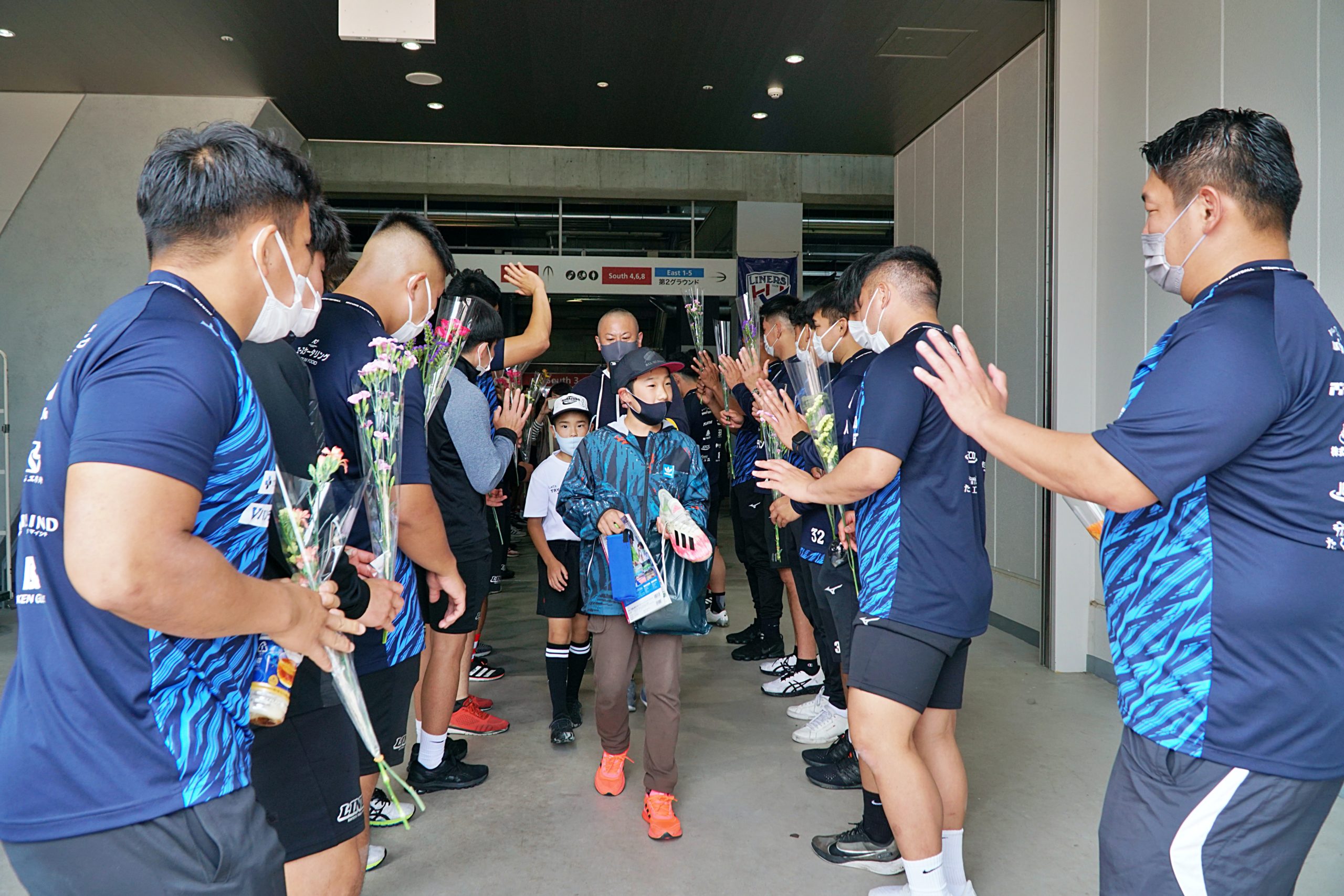 水間ヘッドコーチから、今シーズンのお礼をファンの皆さまへ伝えました。またお見送りでは、選手全員で花道をつくり皆さまを送り出しました。
