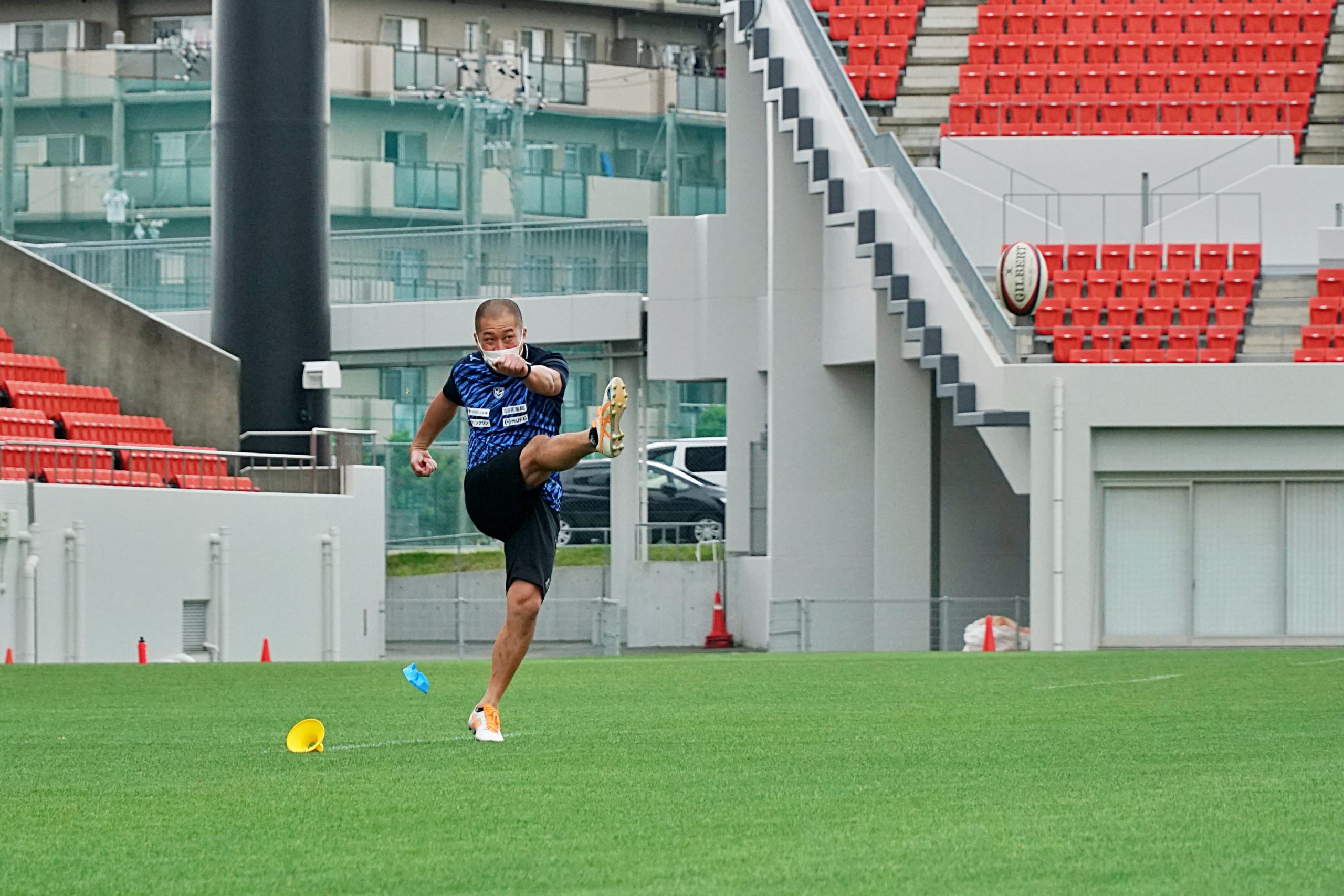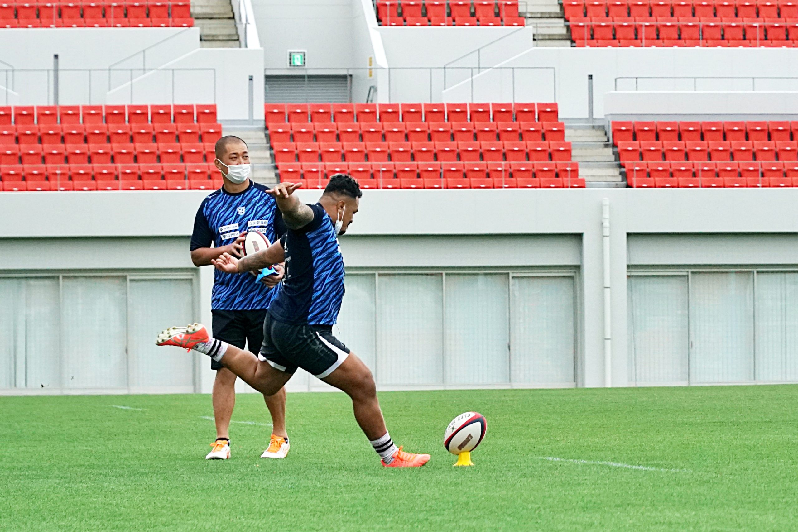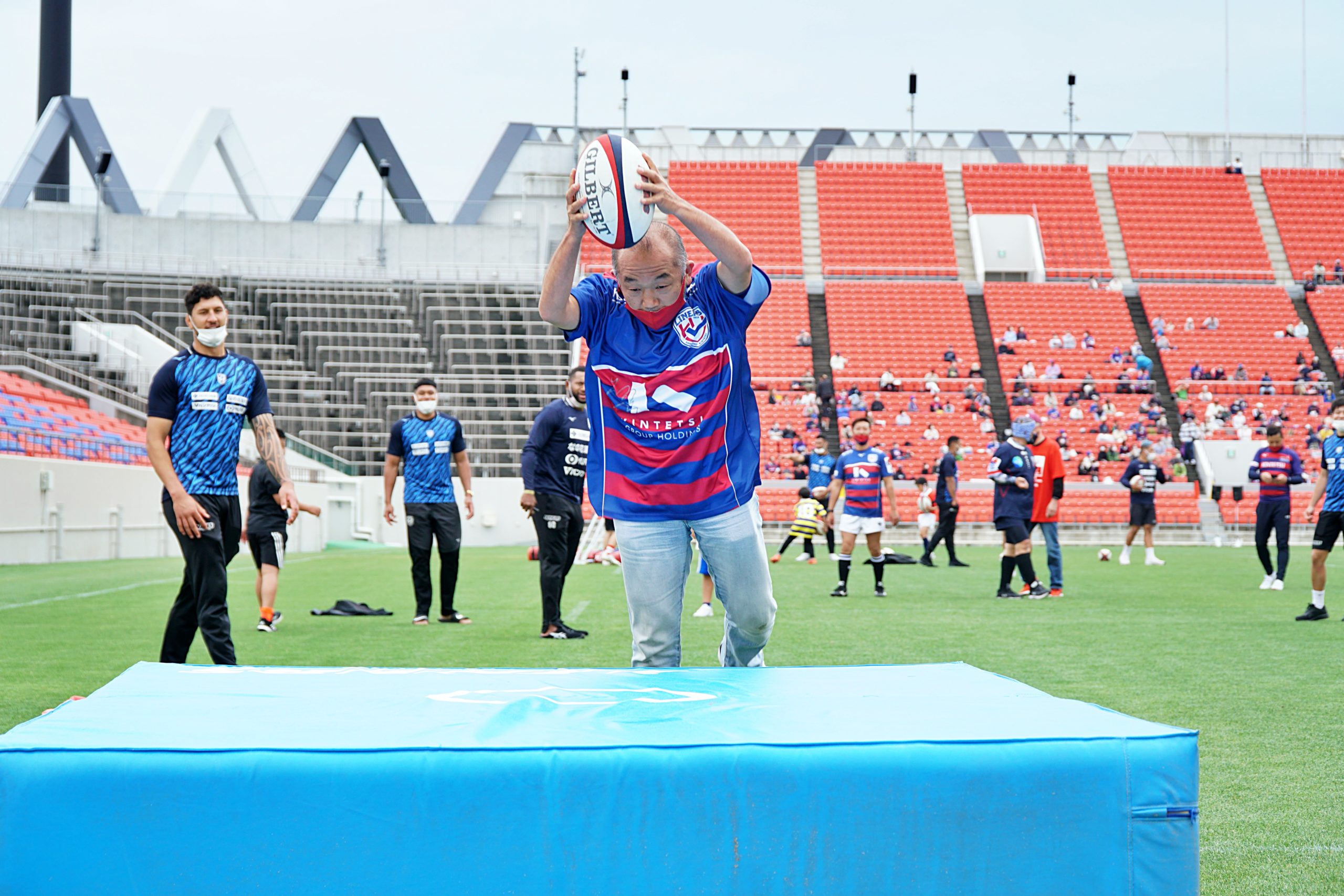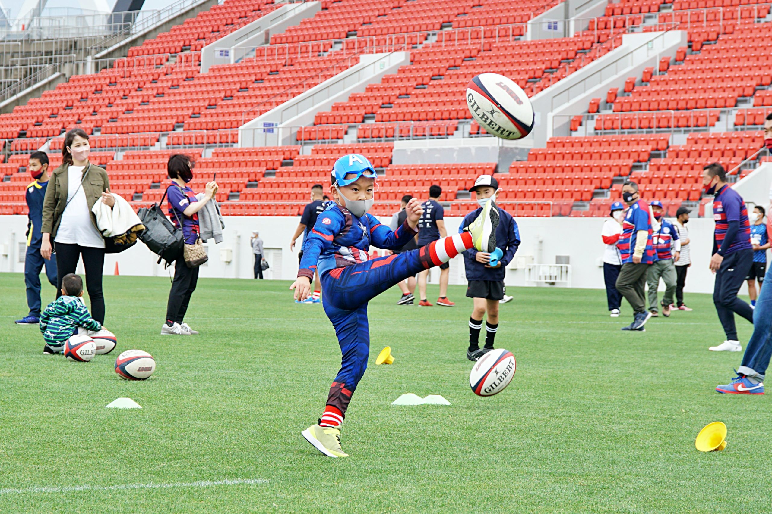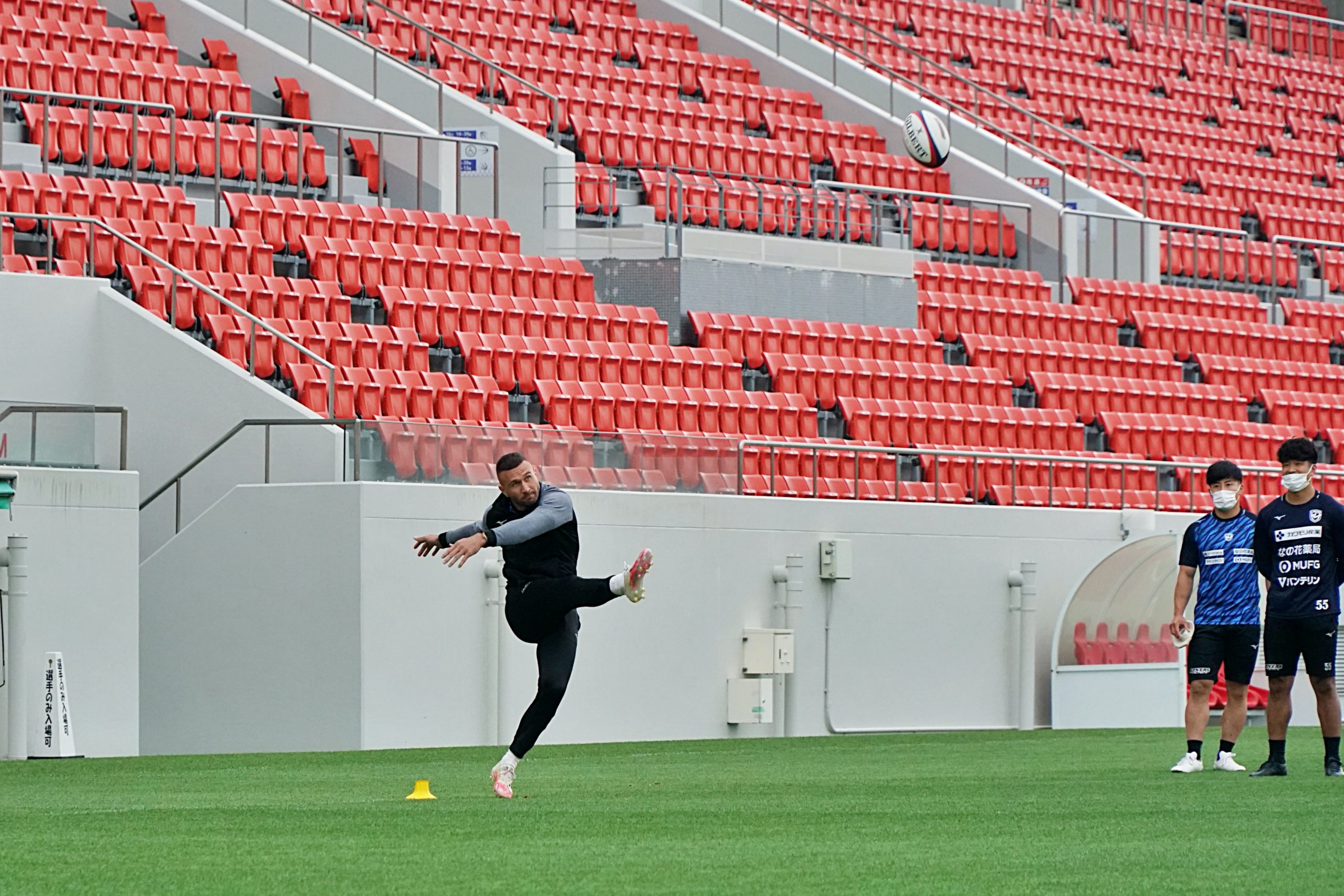 キッカーの選手を中心に、普段は見ることができない松岡勇選手やマタエナ・イエレミア選手などを交えたゴールキックコンテスト。優勝はクウェイド・クーパー選手でした。