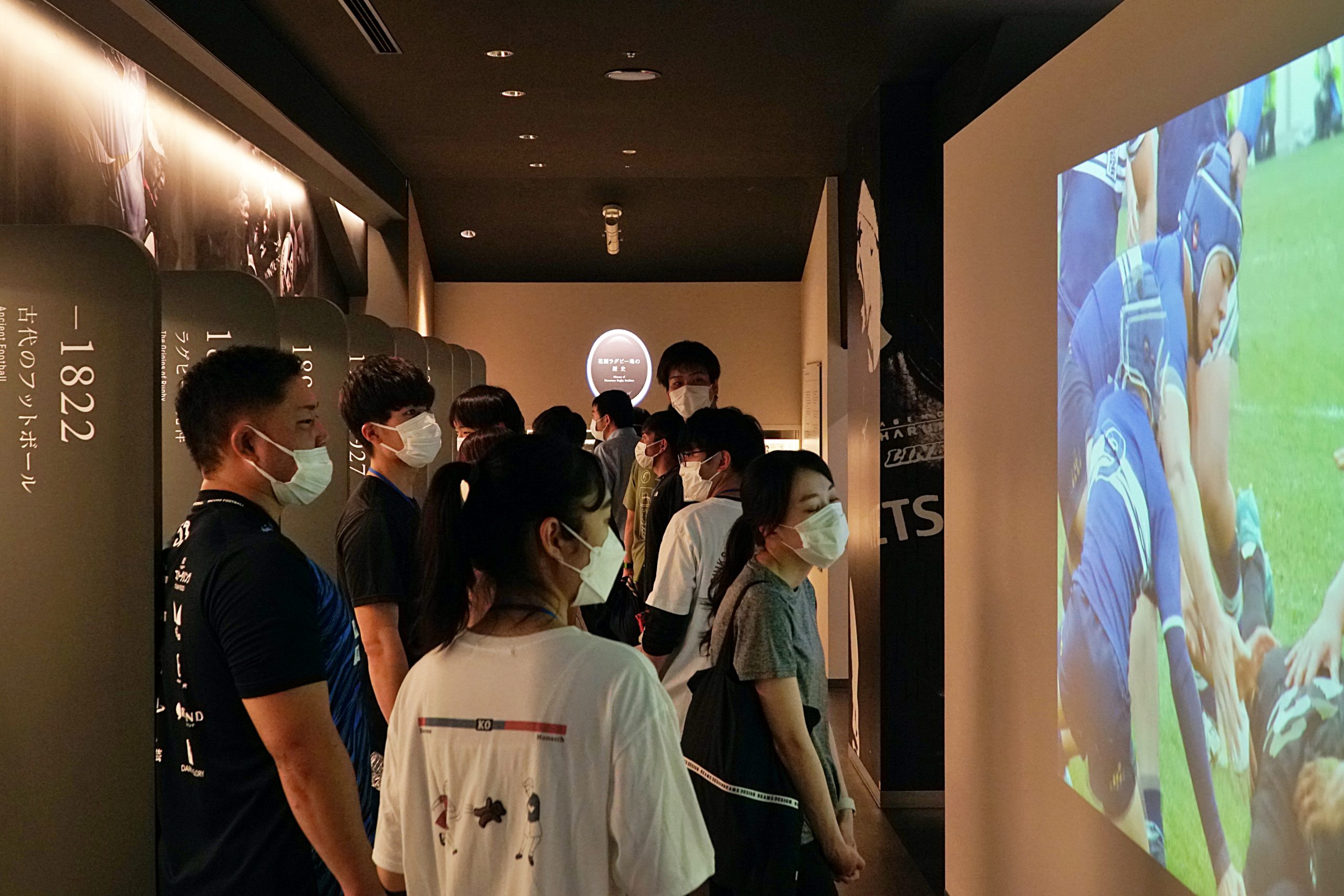 続いてロッカールームや花園ラグビーミュージアム、第1グラウンド、VIPルームなどを見学。普段なかなか見られない光景とあって、みなさんの驚いている姿が印象的でした。