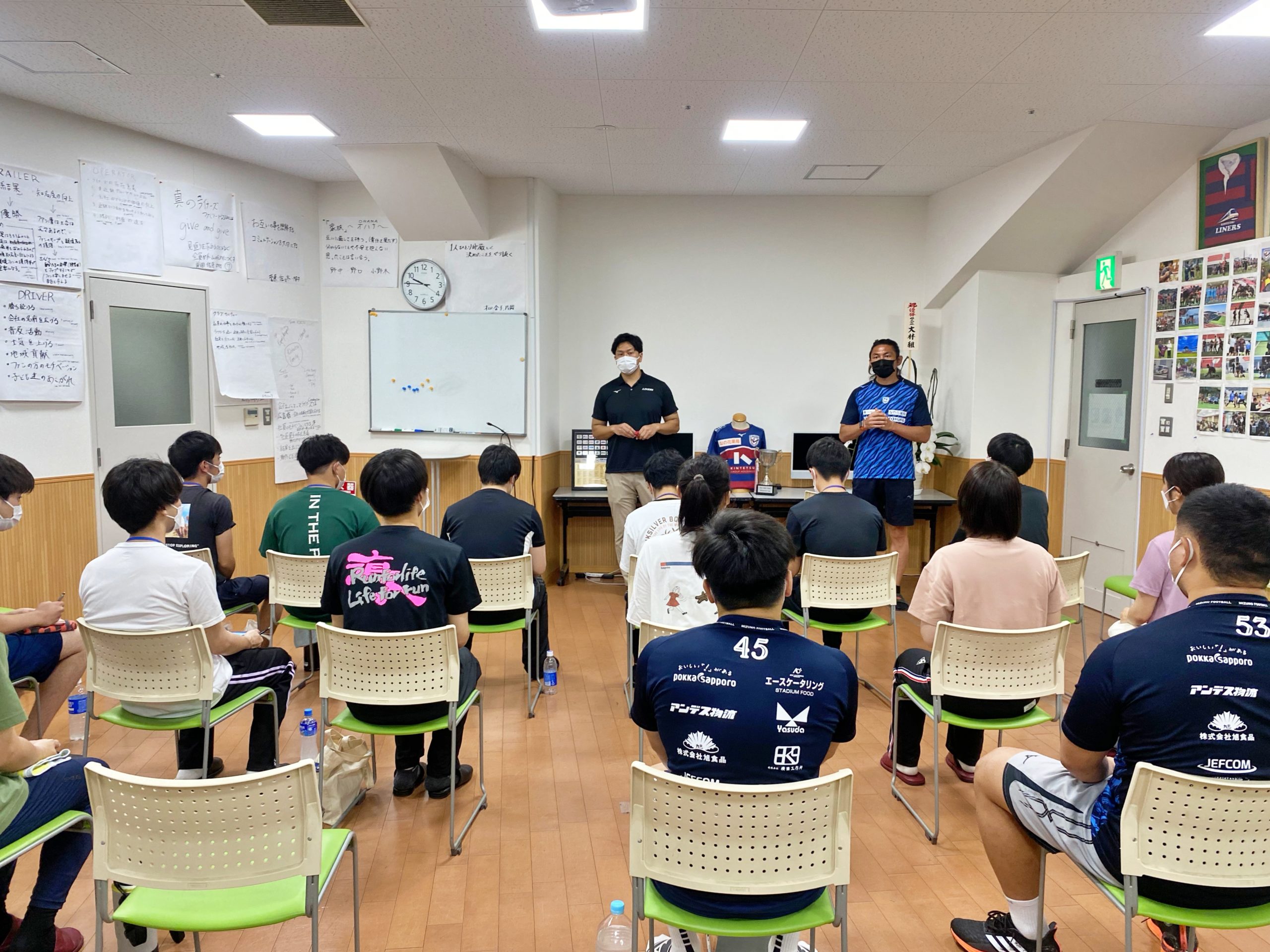 今シーズンライナーズに入団した社員選手、PR高橋虎太郎選手とSH河村謙尚選手も研修に参加しました。