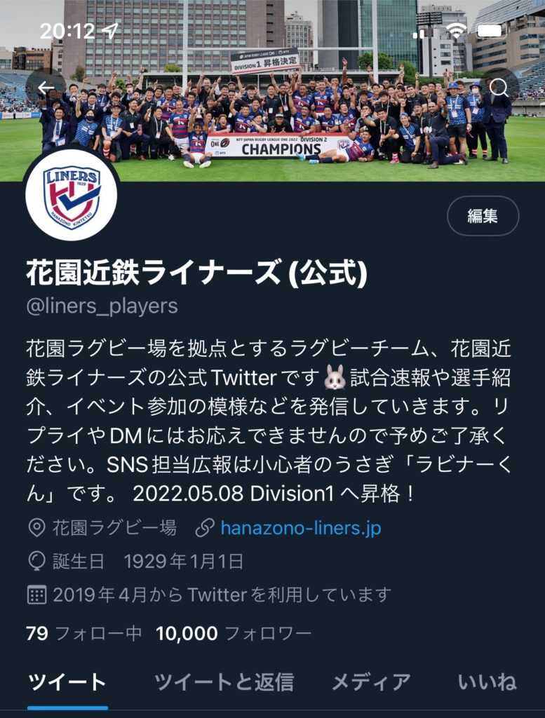 日頃応援いただいているみなさまのおかげで、花園近鉄ライナーズ公式Twitterのフォロワーが1万人を突破しました。