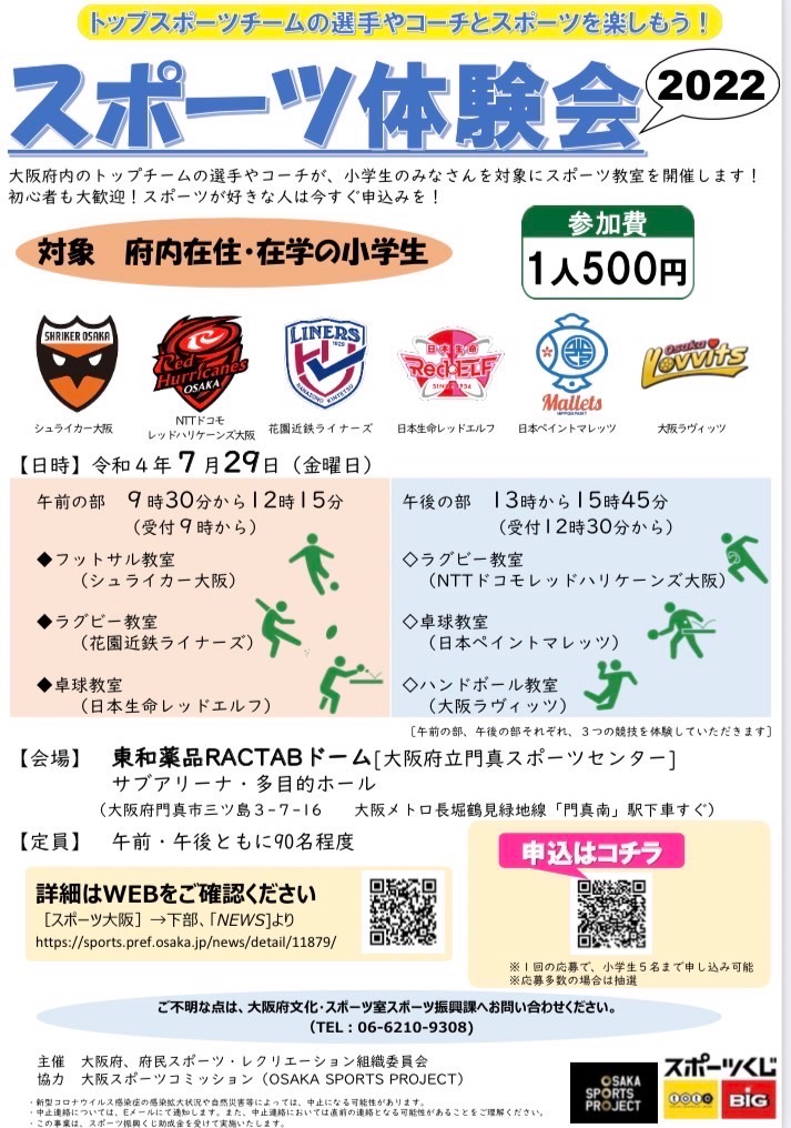 7月29日(金)に開催の「スポーツ体験会2022」にライナーズの選手が参加しますので、お知らせいたします。
